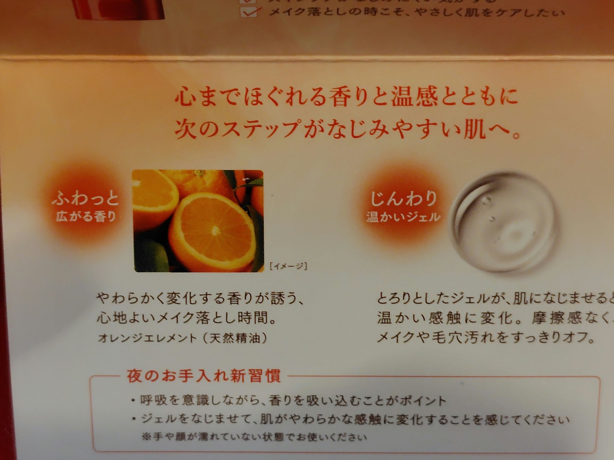 - 温かなジェルが、肌をじんわり包み込む。 メイクや汚れを解きほぐすように洗い上げしっとりなめらかな肌へ。 次のステップがなじみやすい状態に整えるブースター温感メイク落とし。