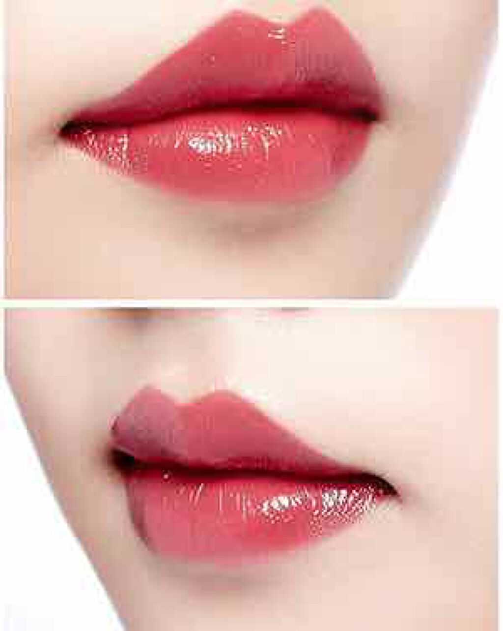 LO02チェリーピンク3枚目は赤リップに重ねて塗ってます。色味は割と見たままな感じです。赤とは違って元の唇が透けないので一本でもしっかり色がついて、意外と濃いめです。私はよく赤リップを薄く塗ってその上にこれを薄く塗ってますが自分的にこの使い方...
