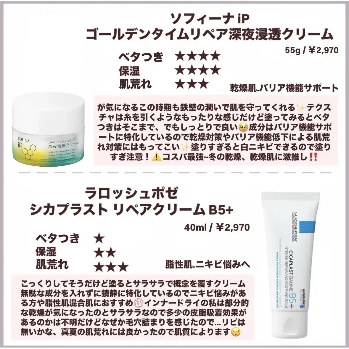 最近は韓国スキンケアもランクインし始めましたね‼️ 個人的にはバリア機能に優れた商品が多いかなと思います‼️ 特にソフィーナipはバグりすぎてるし笑 企業努力を感じます🥹 冬にさしかかり、乾燥やバリア機能低下が気になる時期になったと思うのでぜひクリーム選びの参考にしてくださいね🐰