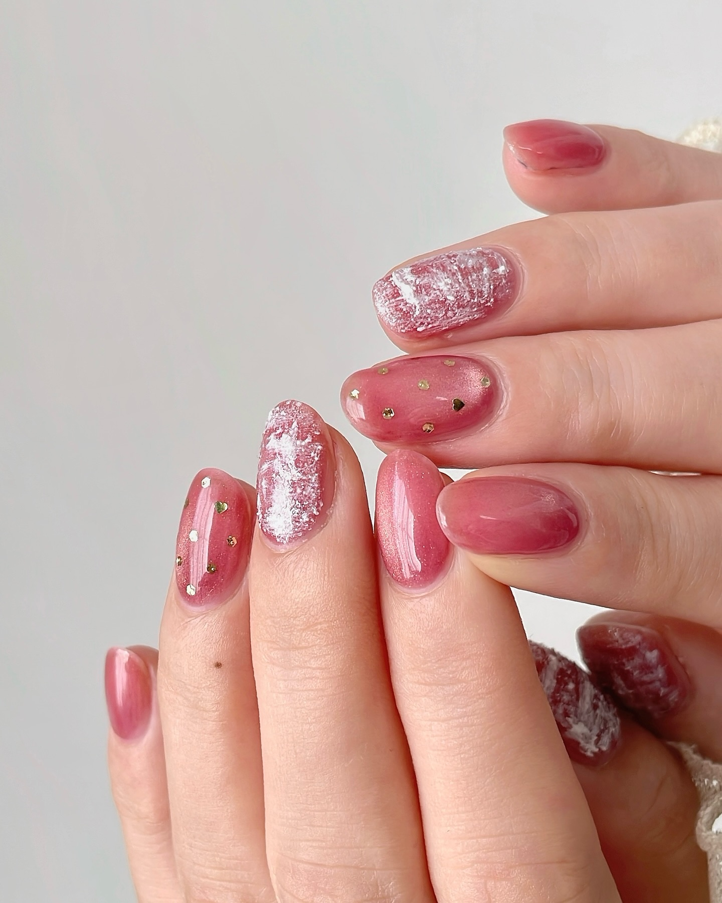 nailholicBE820(親指人差し指小指)nailholicBE302(中指)nailholicGD061(薬指)→薬指にのみユニコーンパウダーを重ねています🦄BE820とBE320は肌馴染みのいいピンクベージュでこの2色を組み合わせる...