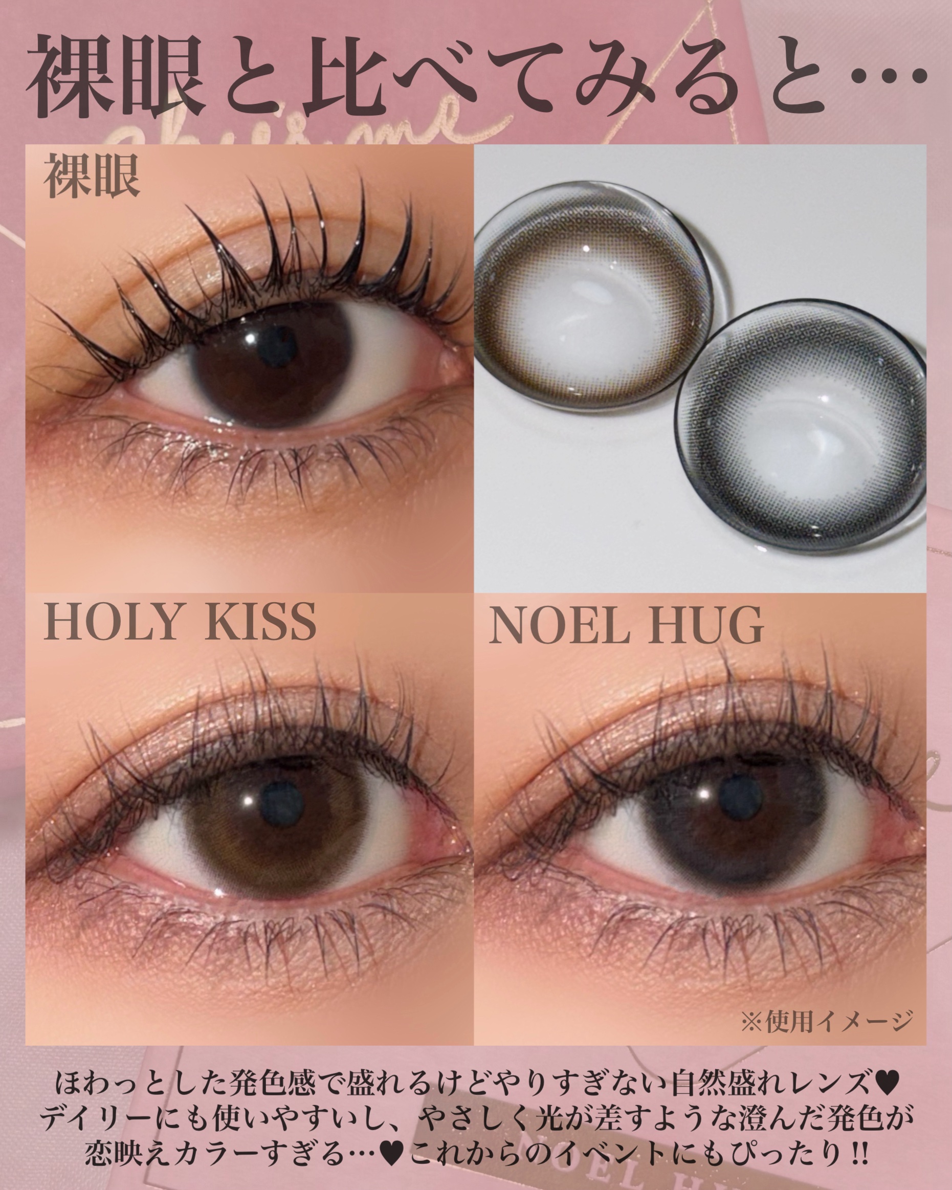 冬の新色**Chu’sme「NOELHUG(ノエルハグ)」**を着けてみたよ🤍やわらかいグレーで、雰囲気をふんわり見せたい日に使いやすいカラー。メイクの系統も問わず、デイリーにも合わせやすかった◎・DIA14.2mm・着色直径13.8mm・B...