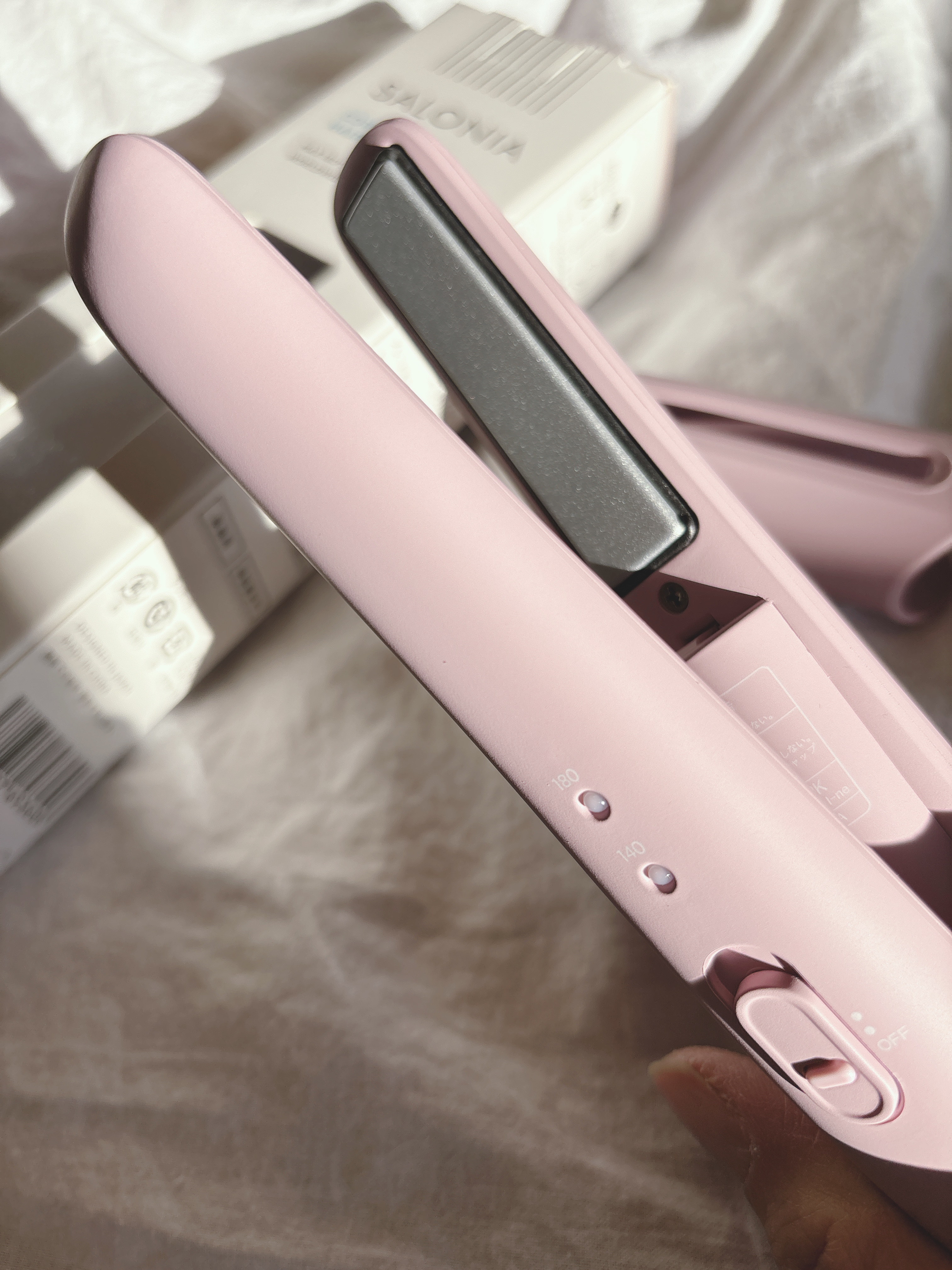 SALONIAコードレスストレートヘアアイロンおでかけ、これ一台!✨コンパクトなのに、しっかりスタイリング。充電式コードレスヘアアイロンで、出先でも手軽に使えて、モバイルバッテリー機能も搭載🙆♀️スマホも充電できるよ〜🙌2段階の温度調整で、...