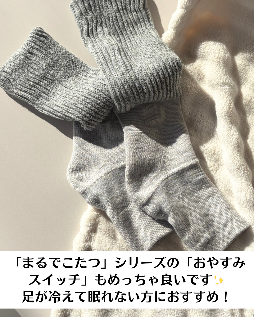 足にある「AVA血管」を広げて血行を促し、つま先まで温かい血液を巡らせることが大切という視点から誕生したのだそう。 本当に温かくて、もう手放せません…! 足元が温まると全身ほかほかするのを感じます。 こういう系にありがちな、朝起きたら脱げているなんてこともありません🪄