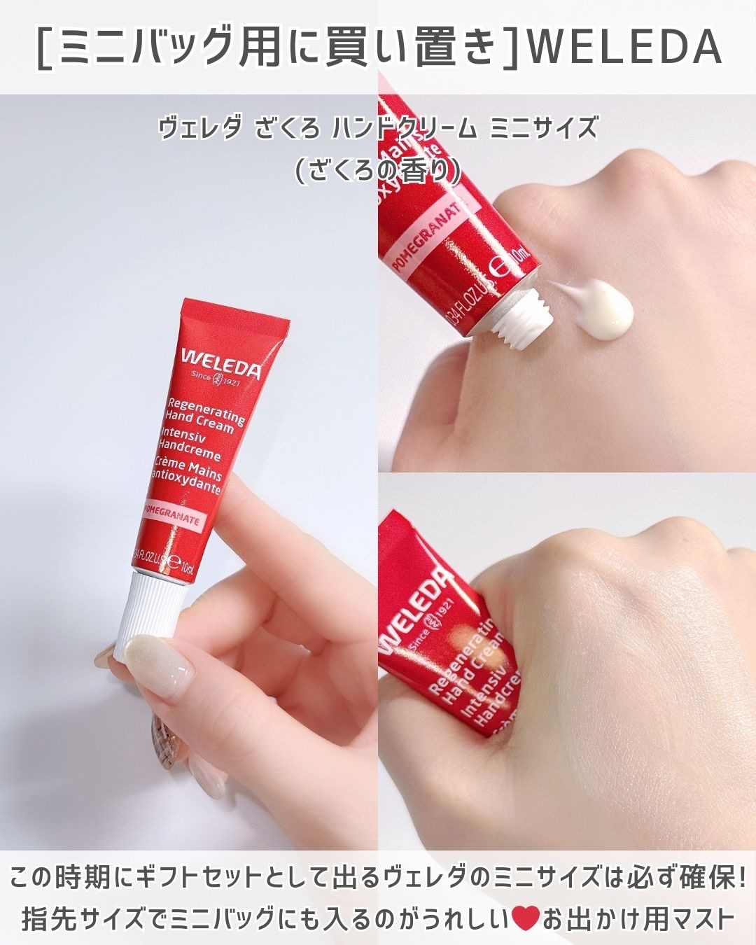 WELEDAのクリスマスコフレ!🎄 仕事柄、手元のケアが欠かせない私が選んだのはハンドクリームギフトです❤︎ ざくろは潤いとハリを与えてくれるそうでいつもカバンに入れて持ち歩き👜♩ WELEDAはなんと100年以上の歴史を持つオーガニックコスメのパイオニア、人にも地球にも優しいサステナブルなブランド🌏