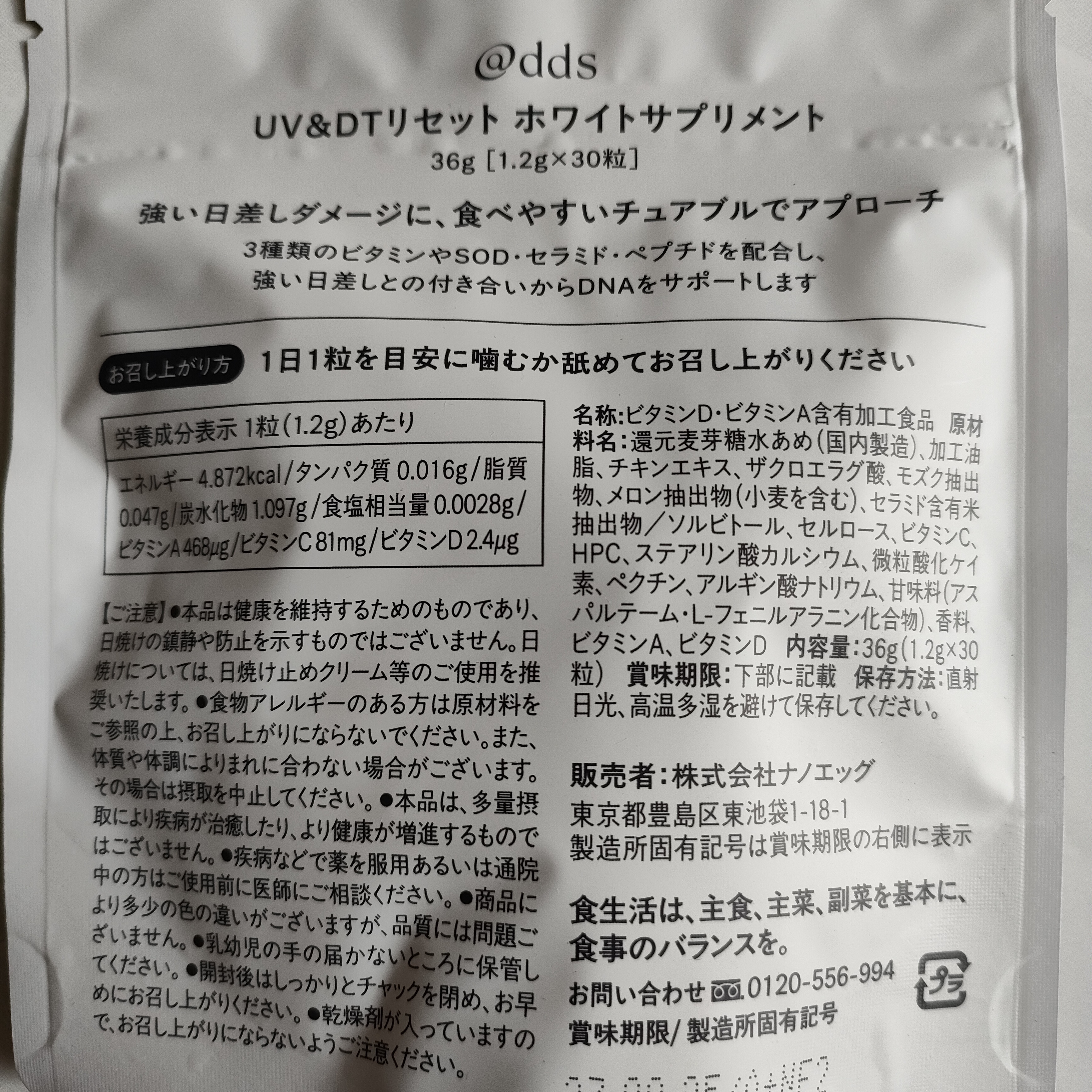 【UV&DTリセットホワイトサプリメント】医療機関専売のチュアブルタイプサプリが、配合成分を20%増量してリニューアル。3種のビタミンに加え、SOD・セラミド・ペプチドなど、美容と健康を支える成分がバランスよく配合されています。紫外線対策とい...
