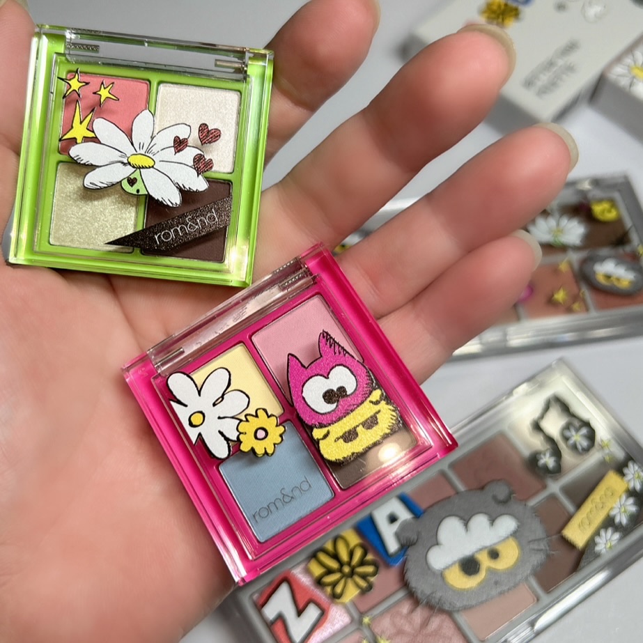 rom&nd【ZO&FRIENDS】とコラボレーション🐾🌼猫の#ZOA達のイラストがキュートで気分が上がる🐱🩶べターザンアイズミニはPOPなカラバリだけどふわっと発色だからユニークなカラーにチャレンジしたこと無い人も使いやすそう🩵💚べターザン...