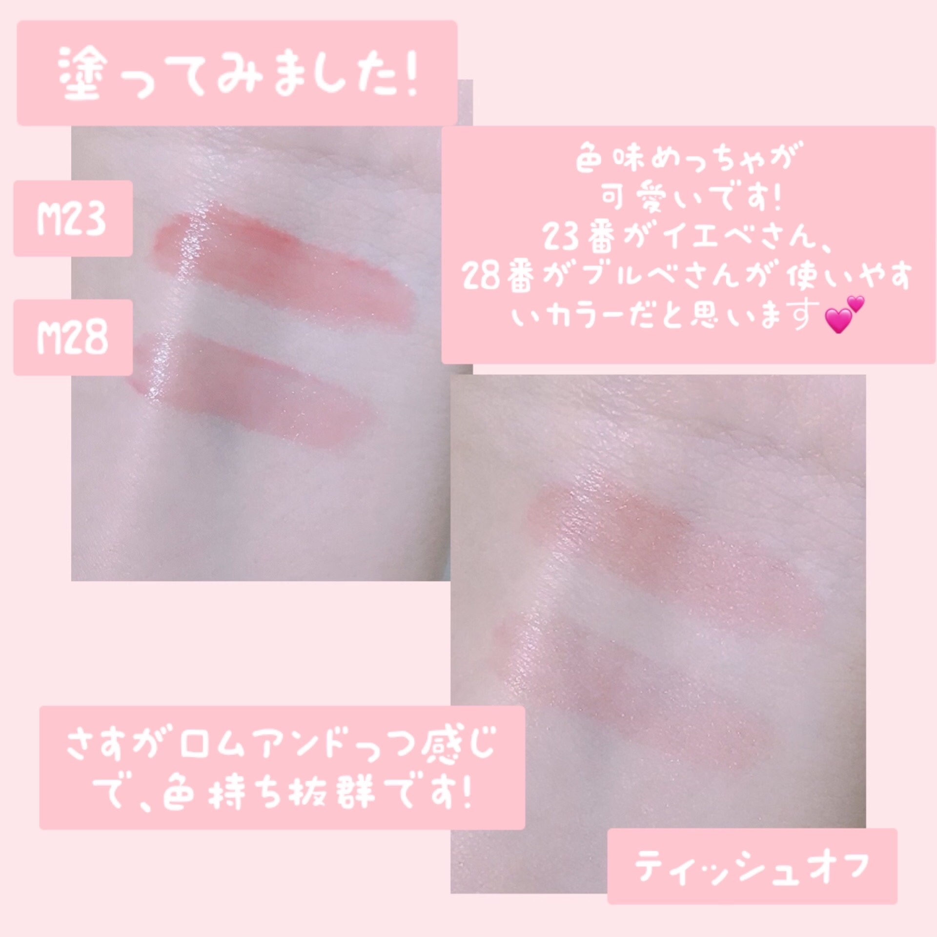 .⋆𝜗𝜚ロムアンドリップミニサイズ𝜗𝜚꙳.*rom&ndジューシーラスティングティントミニ本当に可愛すぎる💞23番はイエベさん28番はブルベさんが使いやすそう!ロムアンドリップ大好きだからミニサイズ使いやすくて嬉しい♡23番のピーチカラーも...
