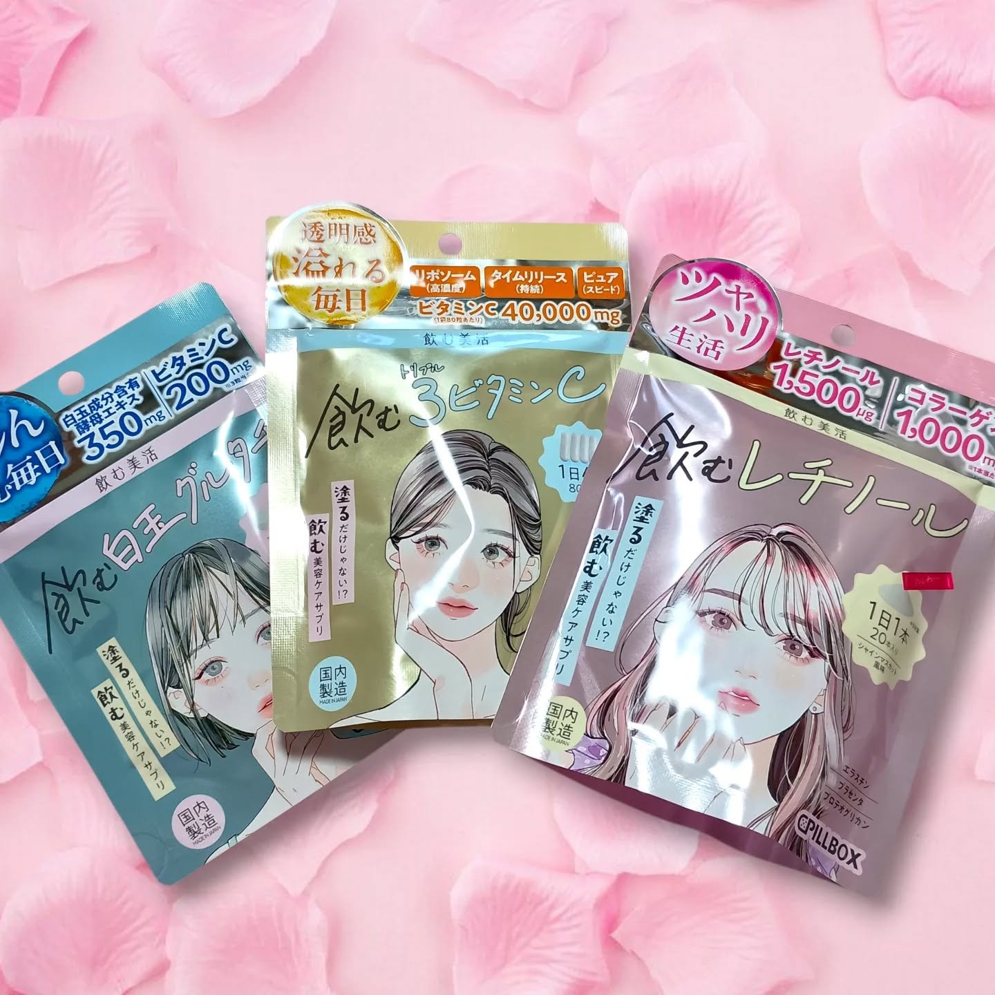 ピルボックスジャパン株式会社さまからいただきました。୨୧𓏸𓈒𓏸𓈒୨୧飲む美活 飲む3ビタミンC飲む美活 白玉グルタチ飲む美活 飲むレチノール୨୧𓏸𓈒𓏸𓈒୨୧女性の美しさを内側からサポート1袋20日で美を目指すサプリメン...