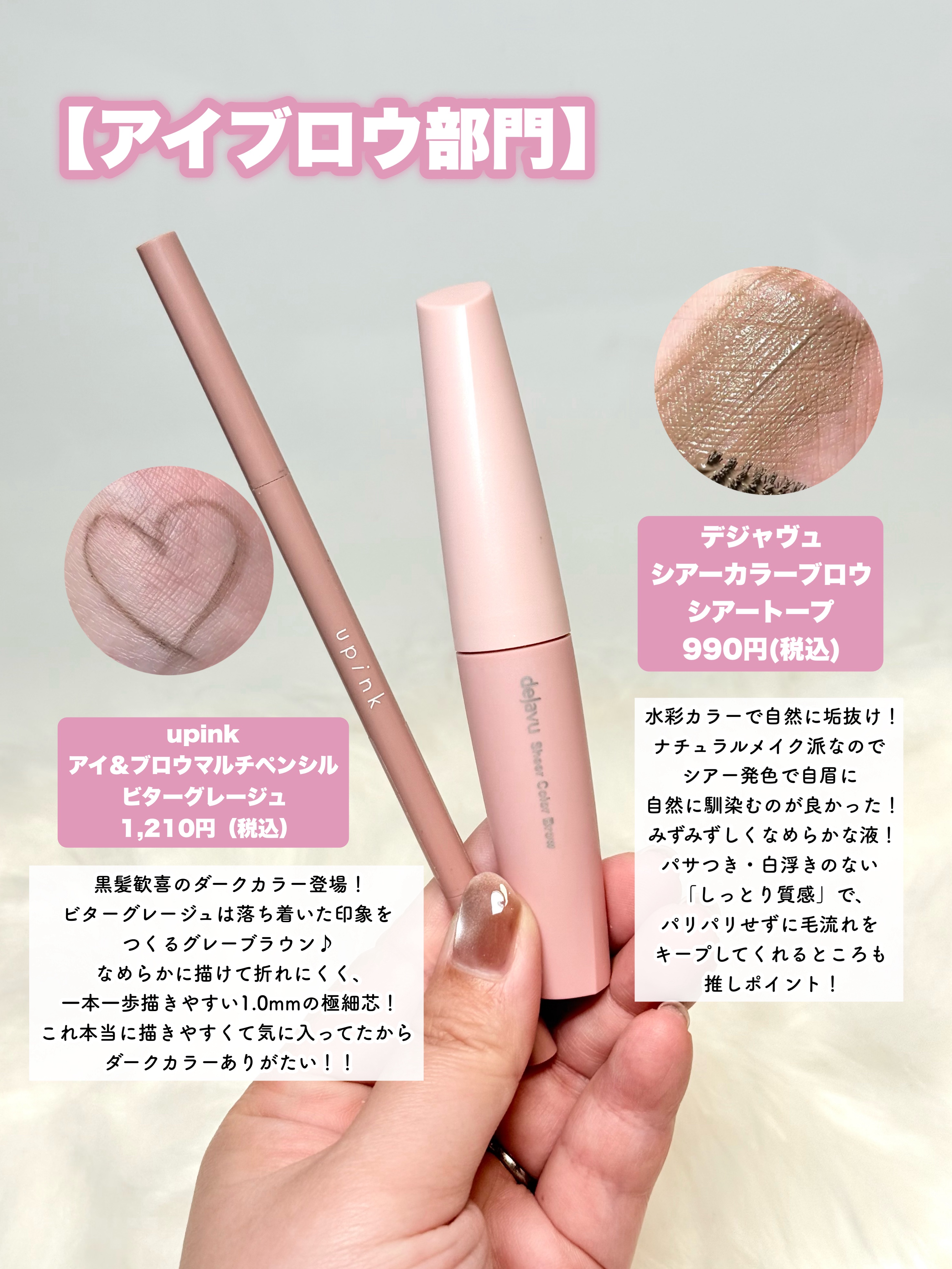 CEZANNEのジェルライナーめっちゃ良すぎる(( ⁎′̥̥̥ ⌑ ‵̥̥̥ ))!! 肌馴染みのいいカラーでうるうるで、ぜんぜん落ちない◎しかも550円税込って!!すごすぎます! 今回使ったのは50ピンクベージュです。 ・トーンアップアイシャドウ 10ベリーブラウン638円税込 ブラウンみが強いので甘すぎない仕上がりに♡ ベリーという名のとおり青みのあるピンクブラウンです。ブルベさん向け♡ ・描くふたえアイライナー 20影用グレージュ660円税込 絶妙な薄さと影感!これ以外涙袋ラインは考えられない! ・極細 アイライナーR 20ブラウン 638円税込 プチプラなのに描きやすいし、にじまない。ついつい手に取っちゃうアイライナー!