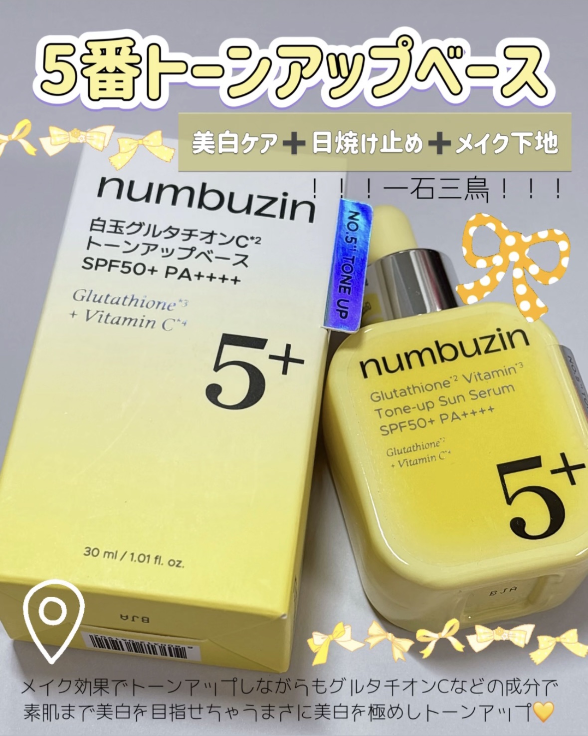 numbuzin 5番 白玉グルタチオンCトーンアップベース SPF50+ PA++++ | 3,500円 |