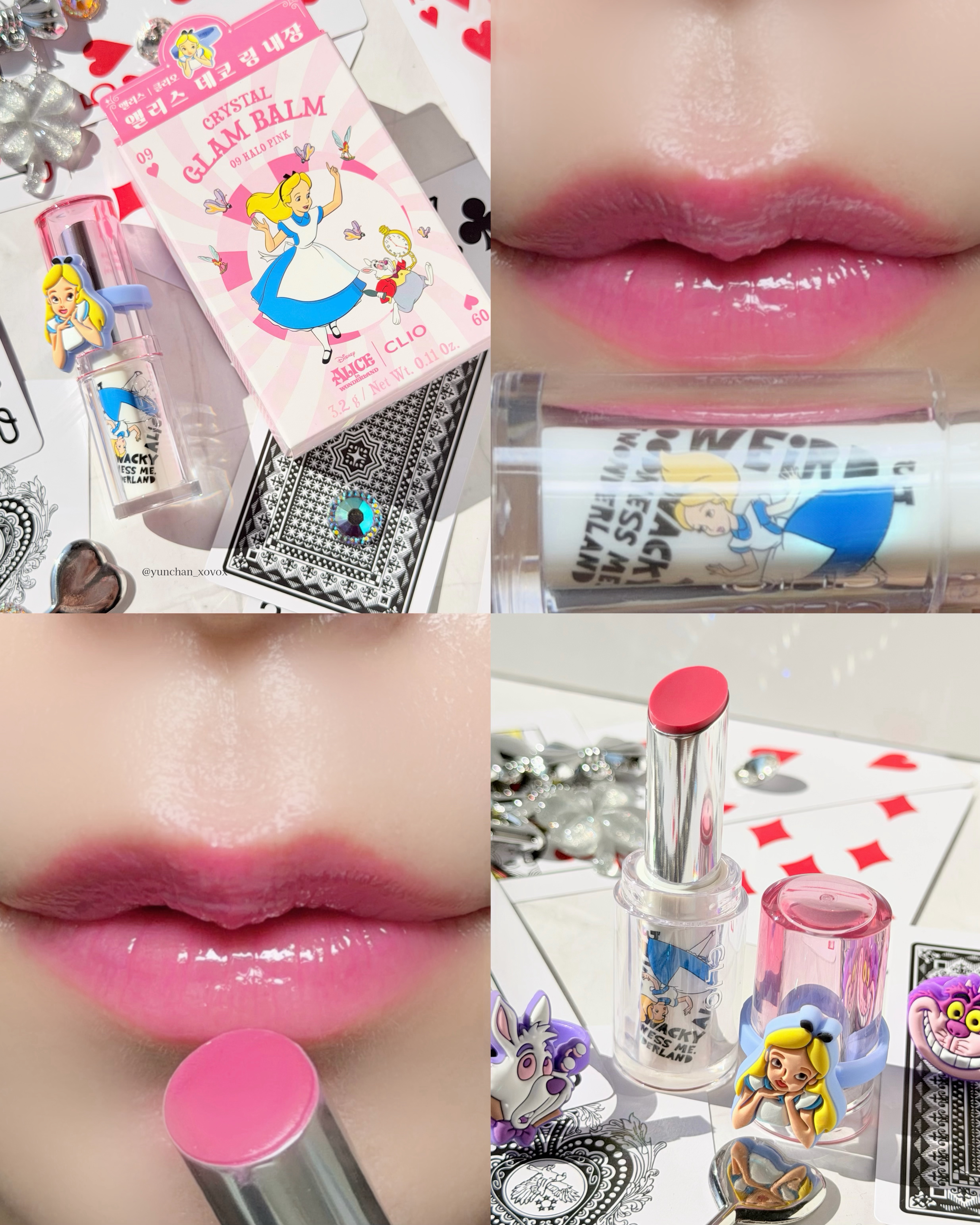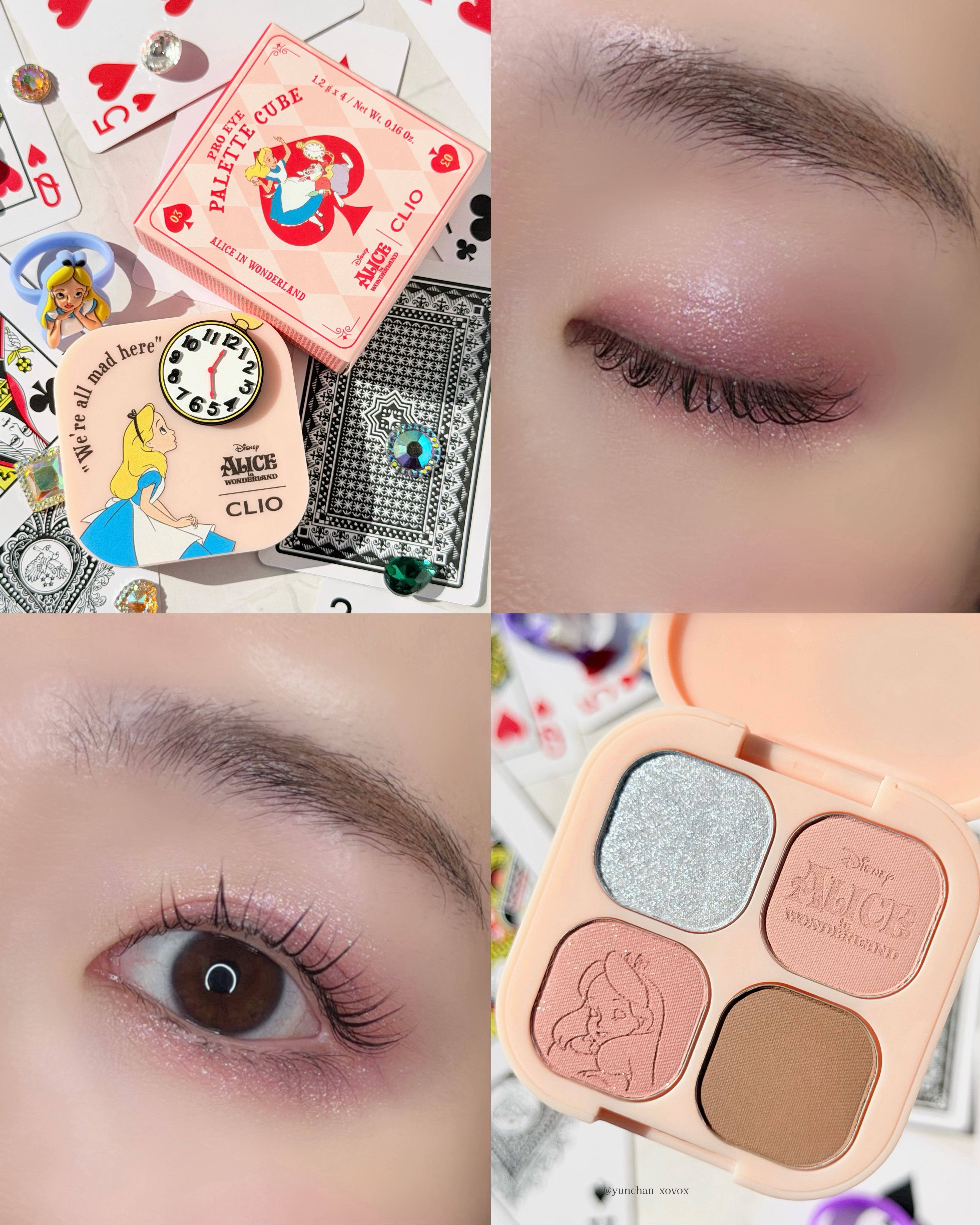 不思議の国のアリス×クリオプロアイパレットキューブ04オイスターインアドリームクリスタルグラムバーム09ヘイローピンクどちらもクールトーンカラーで手のひらサイズのパレットとツヤたっぷりのバーム。パッケージも可愛すぎる…!#PR#CLIO#ご褒...