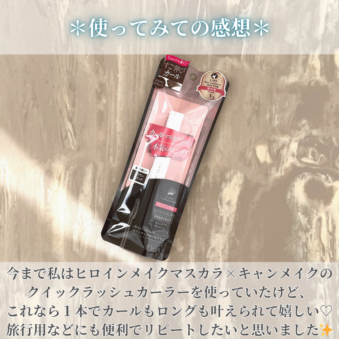 - LIPSベストコスメ2024 下半期新作賞 マスカラ部門1位LIPSベストコスメ2024 下半期こだわりアワード マスカラ部門カール賞1位LIPSベストコスメ2024 下半期こだわりアワード マスカラ部門束感賞3位LIPS月間トレンド賞2024年11月 コスメ部門3位