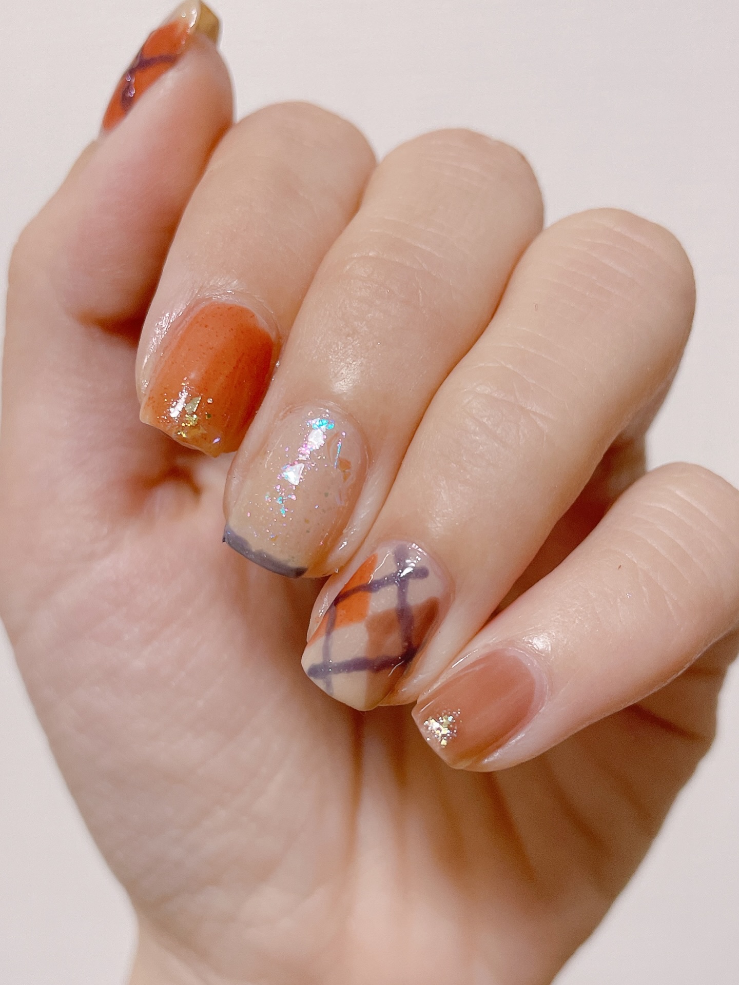 グラデネイル@nailholic_koseのRD039Fでグラデーションネイル💅ひまわりの中心に使ったカラーカラー名的には赤なんだけど、爪に塗ると赤みがかった茶色に発色夕日にも紅茶にも、秋先取りネイルにも見える絶妙な色味🌇☕️🍂中指と薬指は、...