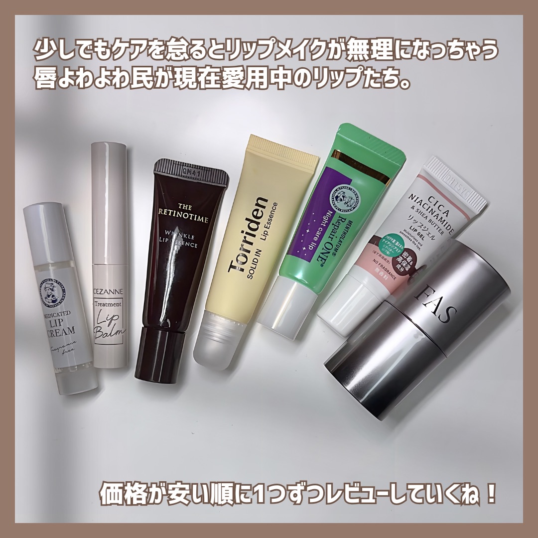 絶対リピする!皮剥けや乾燥、縦皺が気になる方はまずこれを買ってみてほしい ✔︎ナイアシンアミドやレチノール、ヒアルロン酸などの美容液成分贅沢配合 ✔︎チューブ型。むちっと潤うけどべたつきすぎず、夜どれだけベロンベロンに皮剥けしててもちゃんと翌朝回復してる! バーム型のリップケアアイテム。こちらも絶対リピする! ✔︎少し硬めだけど唇に塗るととろっと溶けてもっちり唇に膜を張るような質感。ラップで潤いを密閉するような感覚! 何本もリピしてるほど好き!推しリップチューブ型。乾燥しないのは勿論、ふっくらした唇になるエイジングケアリップ。 ✔︎コラーゲンやヒアルロン酸配合でしっかり翌朝まで保湿力が続く!
