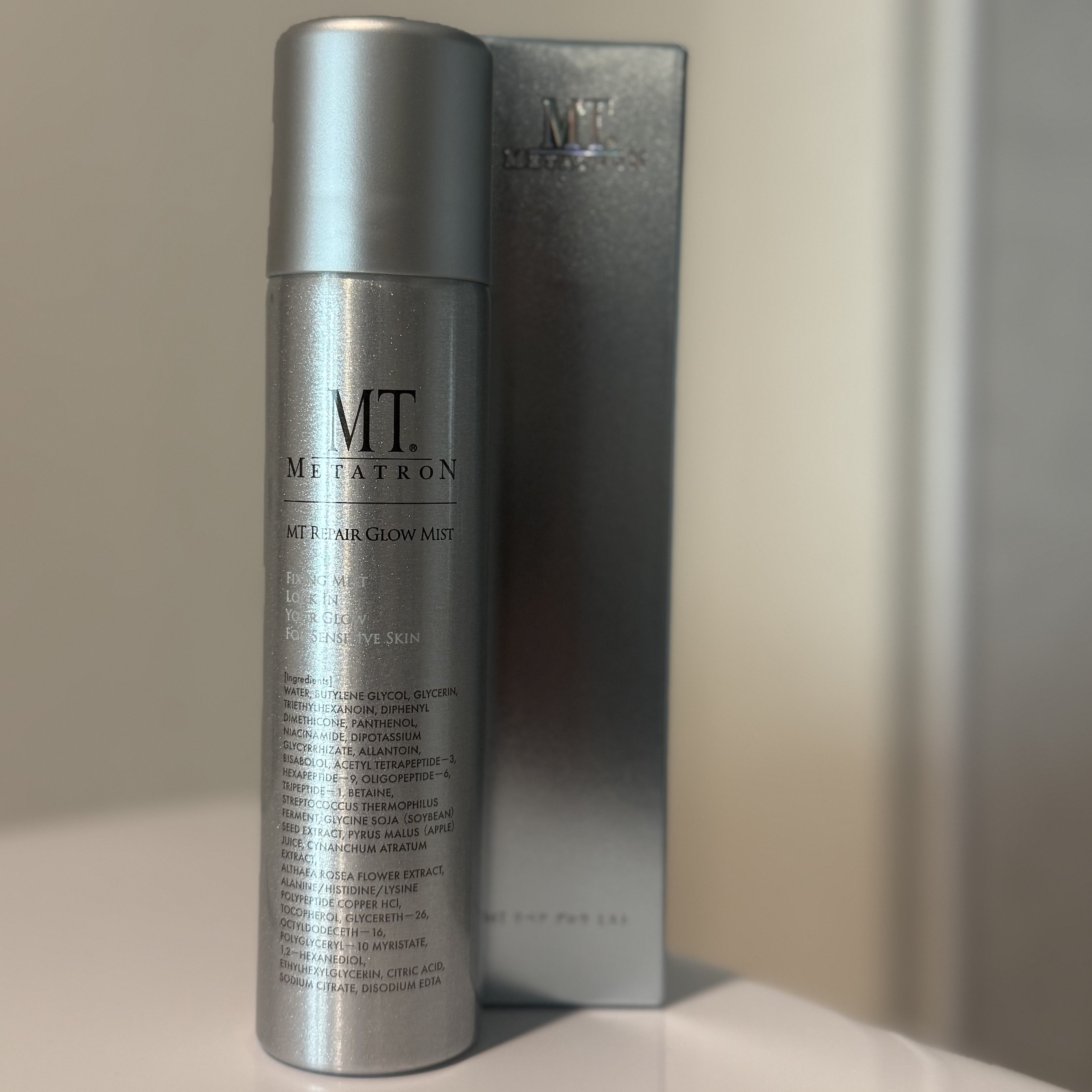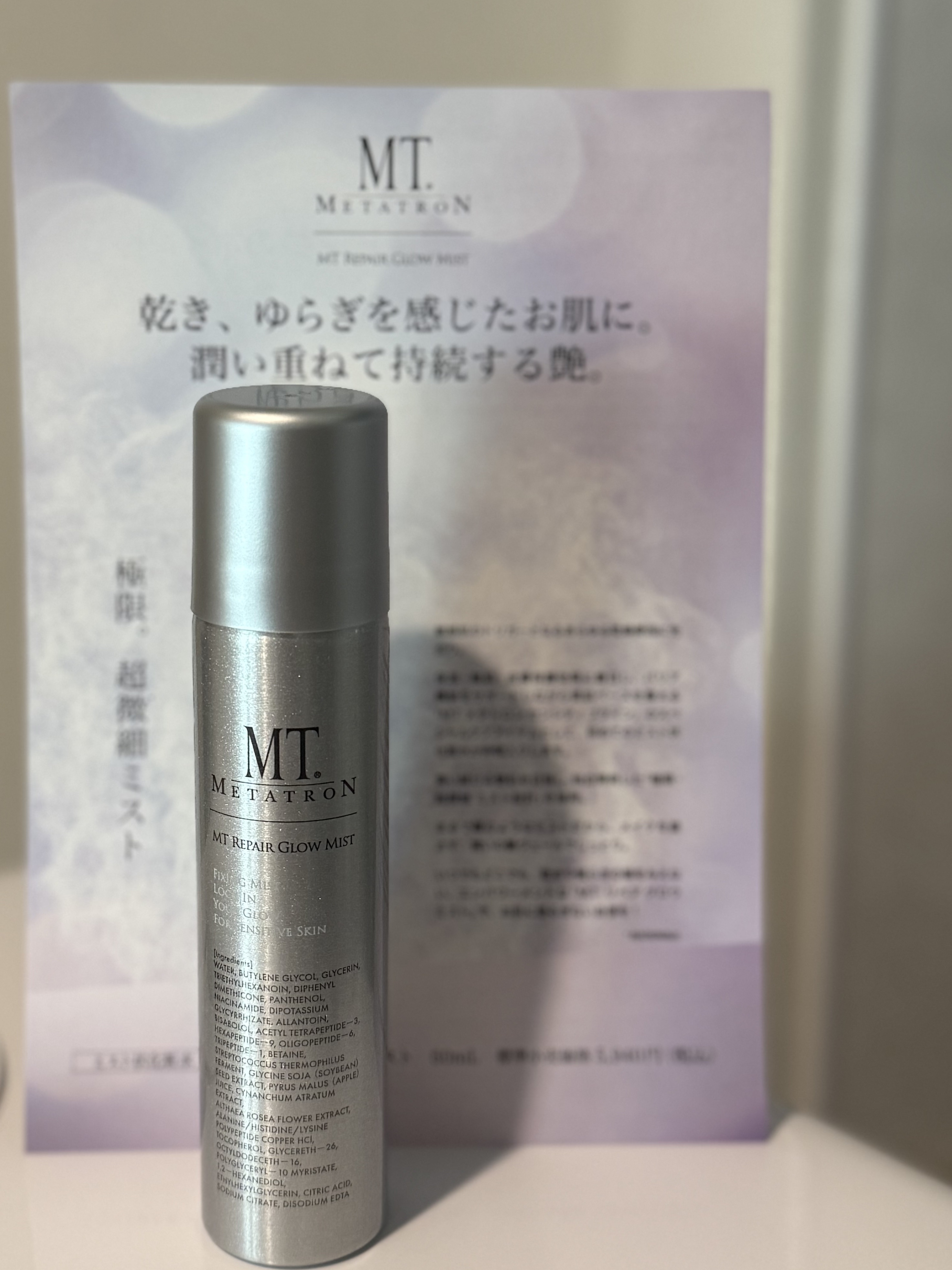 \1年のご褒美にふさわしい、MTのスキンケア/✔️MTリペアグロウミストMTのミスト状化粧水だよ。ナイアシンアミドや保湿成分が贅沢に入っているの。動画でもわかるくらい、ふわっと広がるミストの粒子がとても細かくて、ひと吹きで肌にしっとりとしたう...