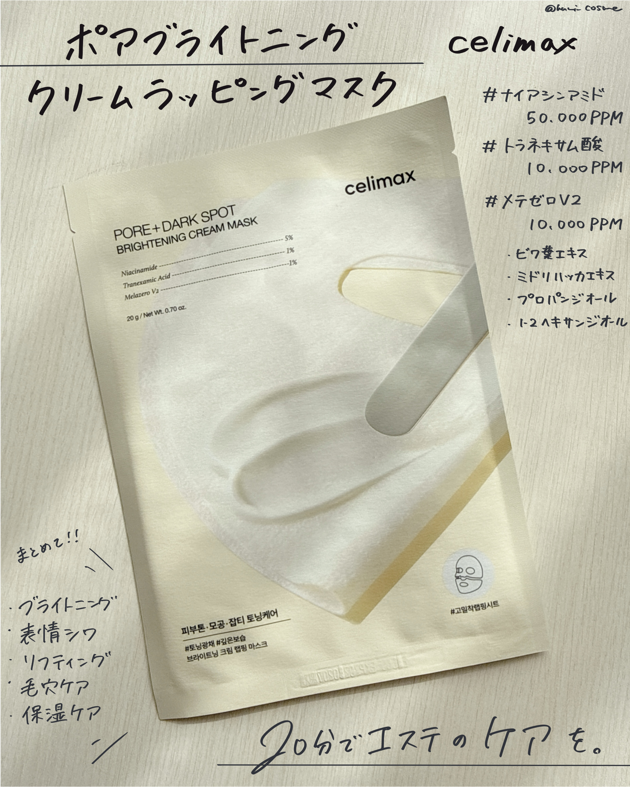 【PR】celimaxポアブライトニングクリームラッピングマスク✔4枚入これ本当に革命レベルでお気に入りになりました‼️今までのシートマスクの悩み、・ずり落ちてくる・メガネが掛けられないなど、しばらく他の作業ができなくなってしまう状況が悩みだ...