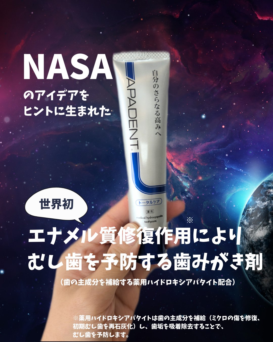 アパデントトータルケア50g(医薬部外品/薬用歯みがき 販売名:サンギαFT3)NASAのアイデアをヒントに生まれた世界初・エナメル質修復作用*によりむし歯を予防する歯みがき剤(歯の主成分を補給する薬用ハイドロキシアパタイト配合)マイルド...