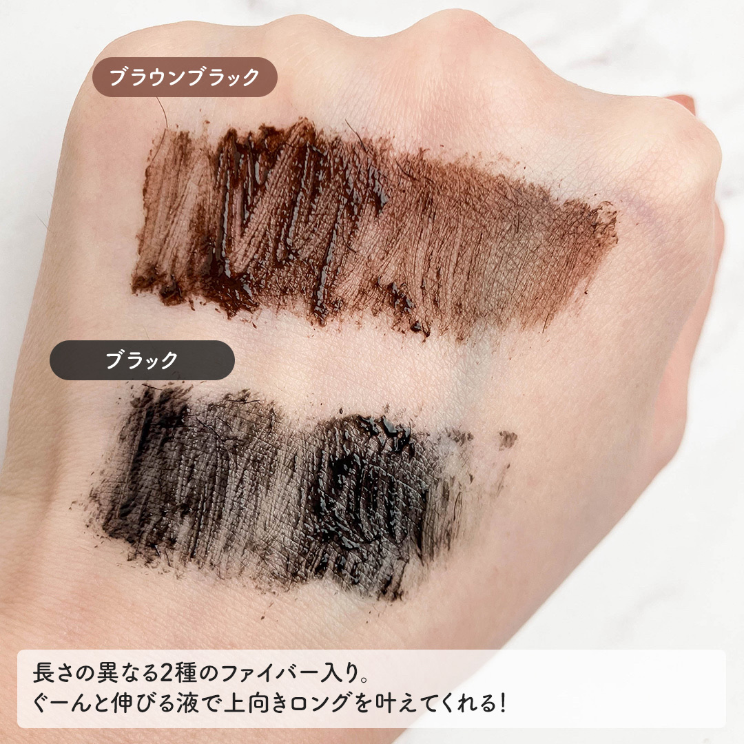 ディーアップ史上最強のカールキープ力と驚きの長さを追求した新しいマスカラです。 カールキープ力の高いマスカラは、通常ワックスや被膜材でカールをキープしますが、同時に「ロング感」や「ダマの無い仕上がり」を両立させることは難しいとされてきました。 ロングの秘密は、なめらかで“伸び感”のあるカール液。ファイバーを包み込みながら素早く毛先まで絡み、美しくスッと長いまつげを実現します。