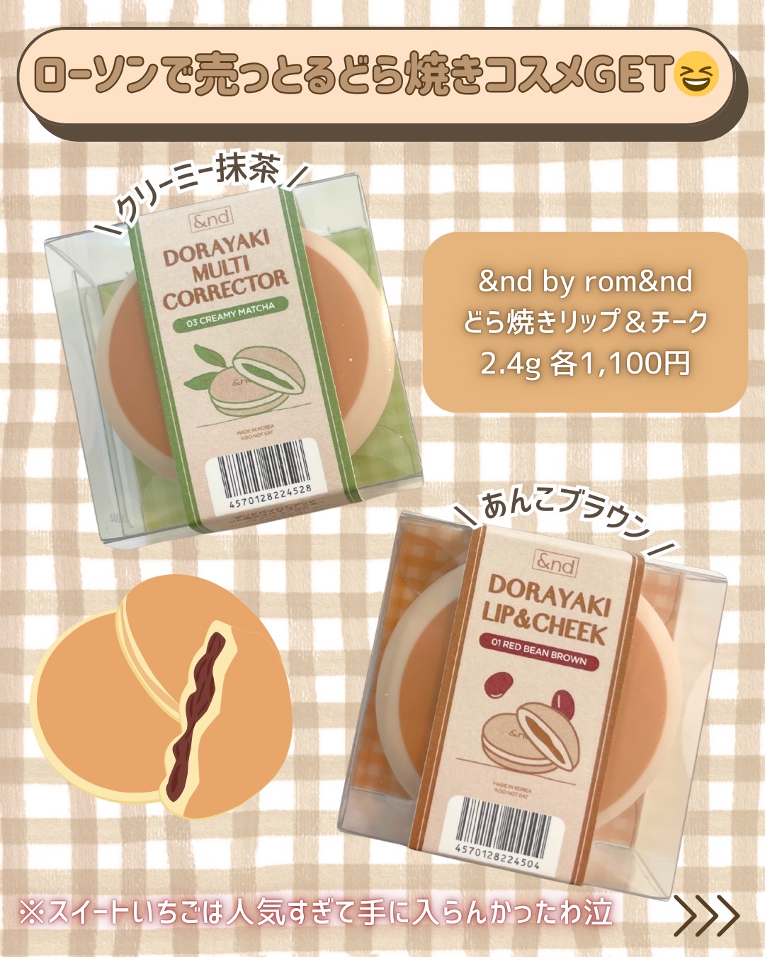 - 「rom&nd」とローソンが手掛ける「&nd by rom&nd(アンド バイ ロムアンド)」から、 ローソンの人気スイーツブランド「ウチカフェ」とのコラボアイテムが登場! どら焼きをイメージしたマルチパレットは、 リップやチーク、ハイライト、コンシーラーとマルチに使える優れもの。 見た目もまるでスイーツのようなキュートなフォルムで、ポーチに入れておきたくなる可愛さです。