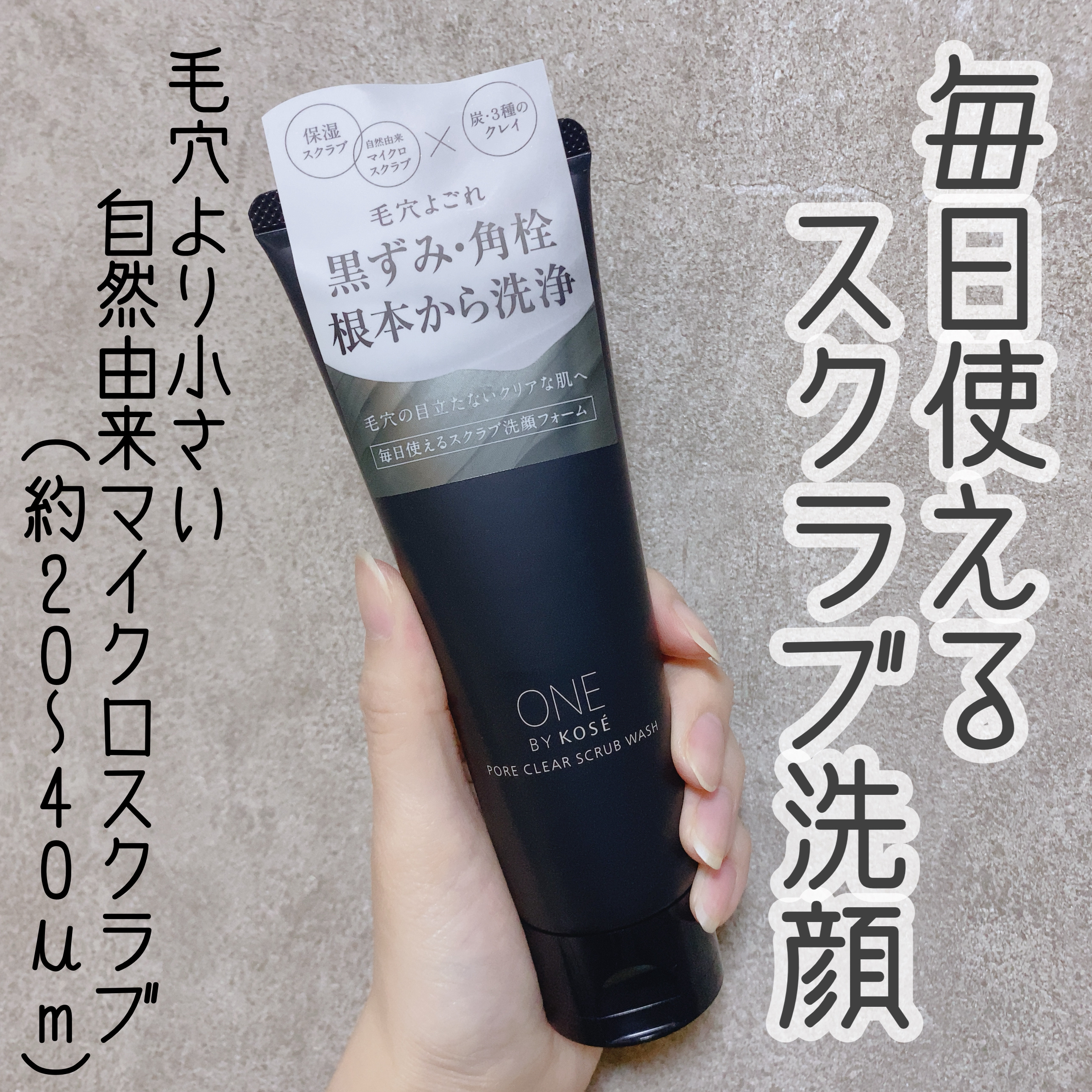 【ONEBYKOSE ポアクリアスクラブウォッシュ ¥1,980】最初に同じシリーズのメイク落とし「ポアクリアオイル」を使っていて、使用感が好みだったので、こちらの洗顔も追加購入しました。毎日使用できるスクラブ洗顔で、「自然由来マイクロスクラ...