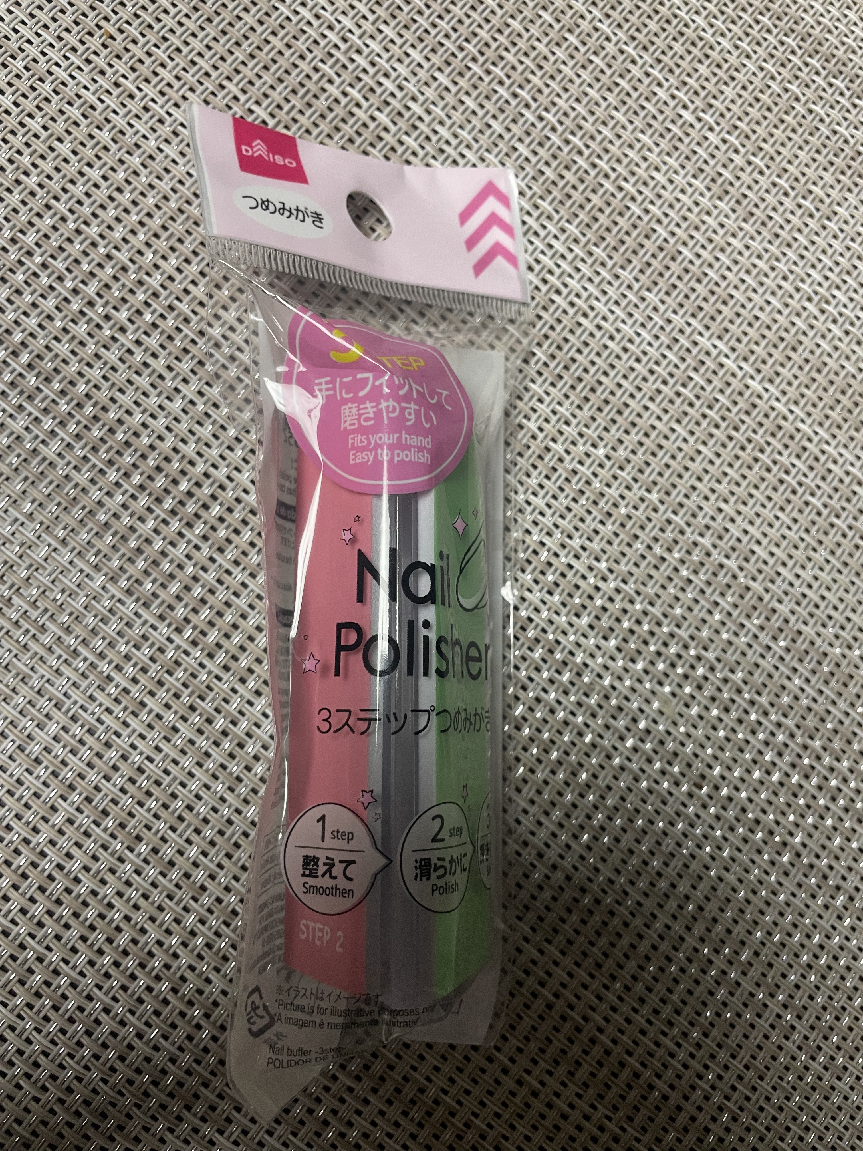 DAISO3ステップつめみがき¥110・ダイソーで購入した3ステップつめみがきです!・三角形の形で3面で爪をみがけます💅✨️・セルフネイルする時やネイルしていない時でも爪を切った後に使ったりもしてます😊・step1でざっくりみがけてstep2...
