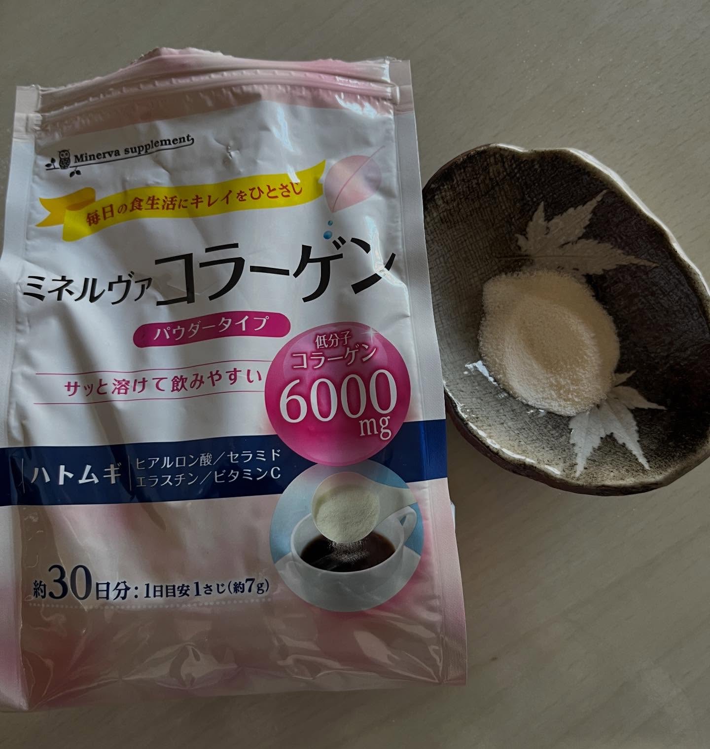 ミネルヴァコラーゲンパウダー210g低分子コラーゲンのほかに、ハトムギ・ヒアルロン酸・セラミド・エラスチンなどうれしい美容サポート成分がぎゅっと入ったパウダータイプのコラーゲン✨サッと溶けて飲み物の味を邪魔しにくいから、朝のドリンクに混ぜるだ...
