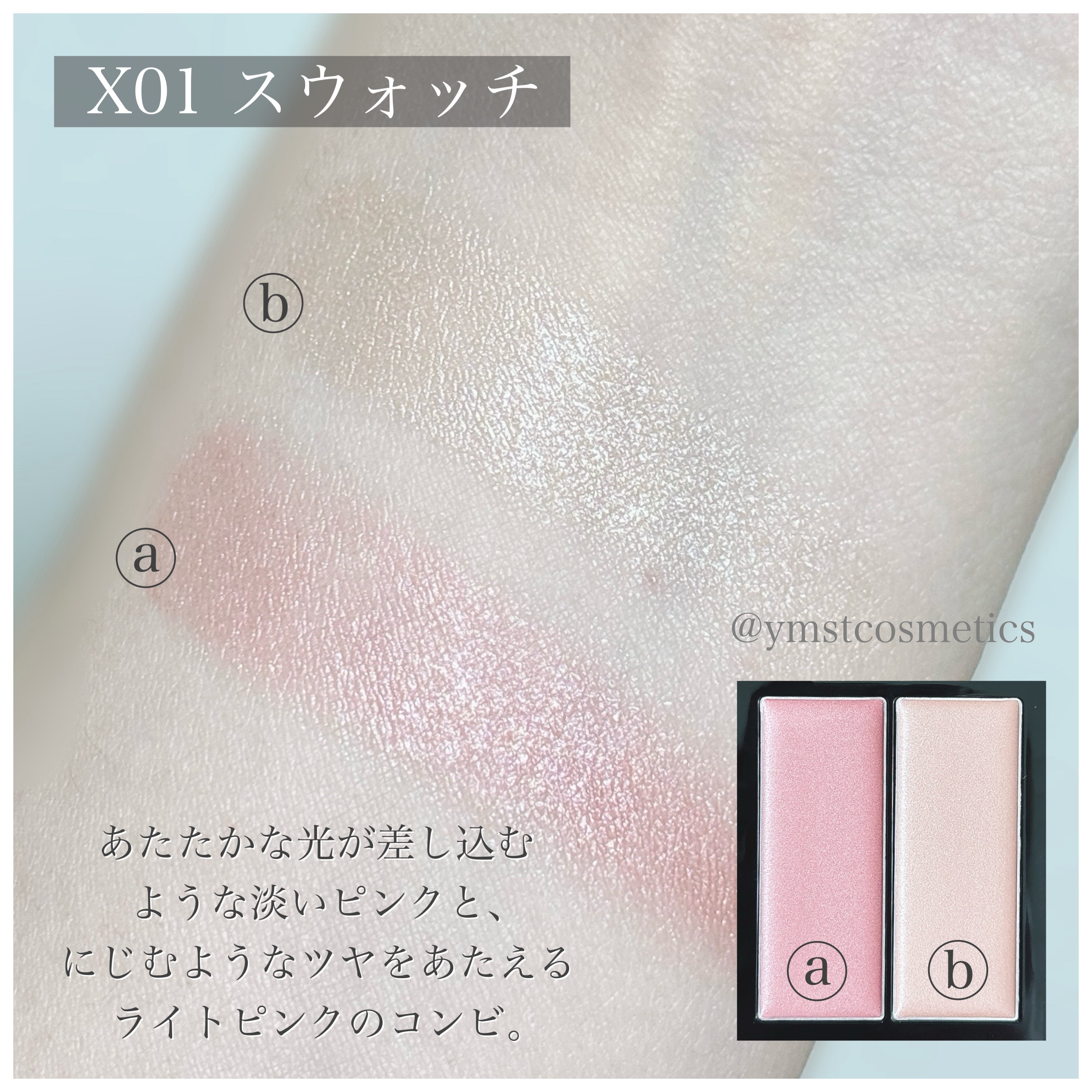このシリーズ、大好きなんだけど今までで1番どタイプかもしれない🤭 直観的に部分置きできて、クリーム状ではあるけど、肌に乗せると過度なベタつきがなくさらっと仕上がるのが良いところ🙆♀️ X03は白みのある明るさが足されて、ちょっと儚さも感じる雰囲気がエモい☺️ 予約も公式だとあったけど、もうなくなっちゃったみたいなので本番お見逃しなく〜!