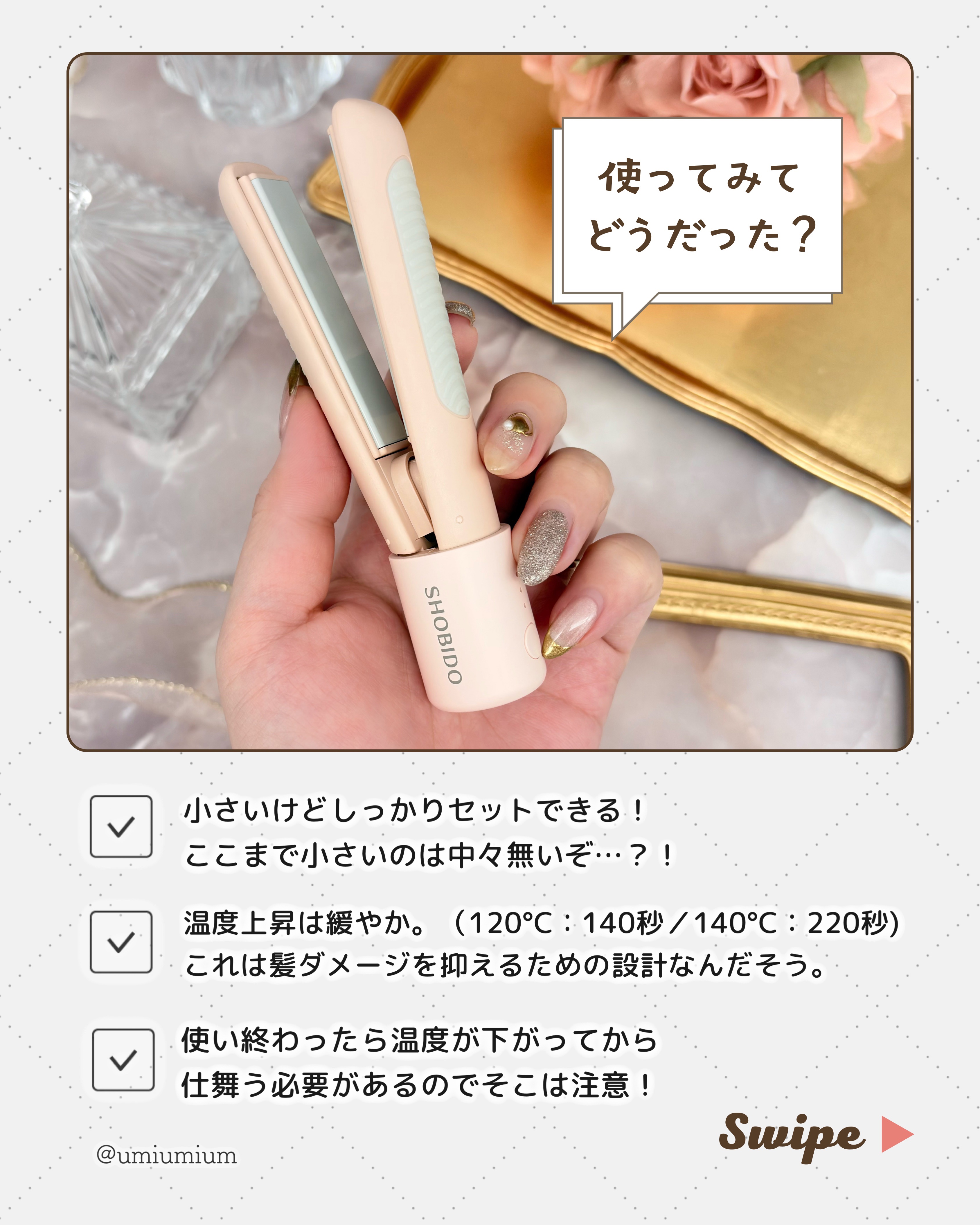 #提供#PR#SHOBIDO#粧美堂#どこでも前髪ミニアイロン#LIPSプレゼントSHOBIDO様からいただきました🫶🏻【SHOBIDOどこでも前髪ミニアイロン】スマホより小さく、タマゴより軽いUSB給電式の手のひらサイズのミニアイロンです♡...