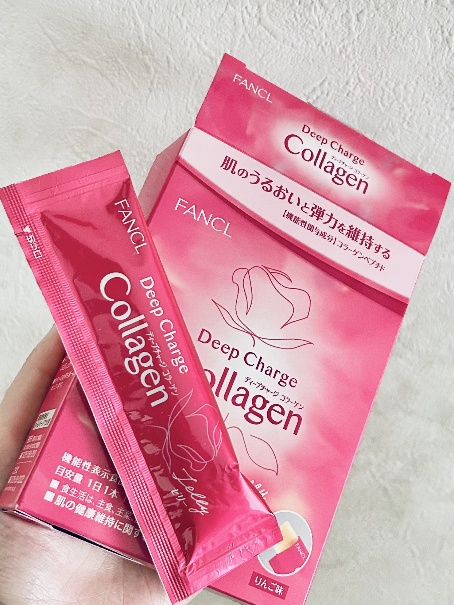 ファンケルディープチャージコラーゲンスティックゼリーディープチャージコラーゲンは、スティックタイプで持ち運びしやすく、リンゴ味でとても美味しいです。水なしでそのまま食べられるので、外出先でも気軽にコラーゲン補給できるのが魅力です。少しだけ苦味...