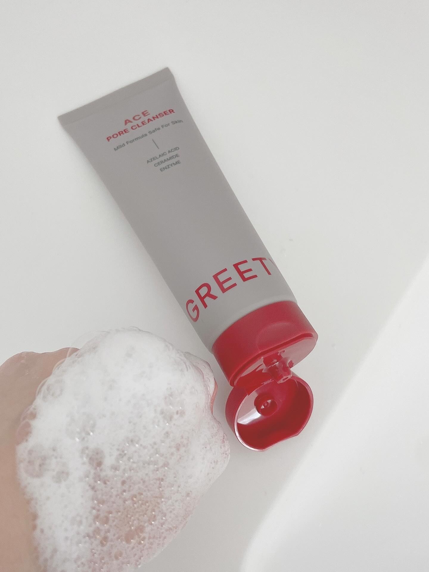 GREETY.(グリティー)エースポアクレンザー♡毛穴をきゅっと引き締め、なめらかな肌へ💖肌トラブルをマルチにケアする成分”アゼライン酸”を配合した洗顔料🫧炭パウダーと酵素の力で毛穴の黒ずみを溶かしだしてくれるんだって!チューブタイプ。ぷるん...