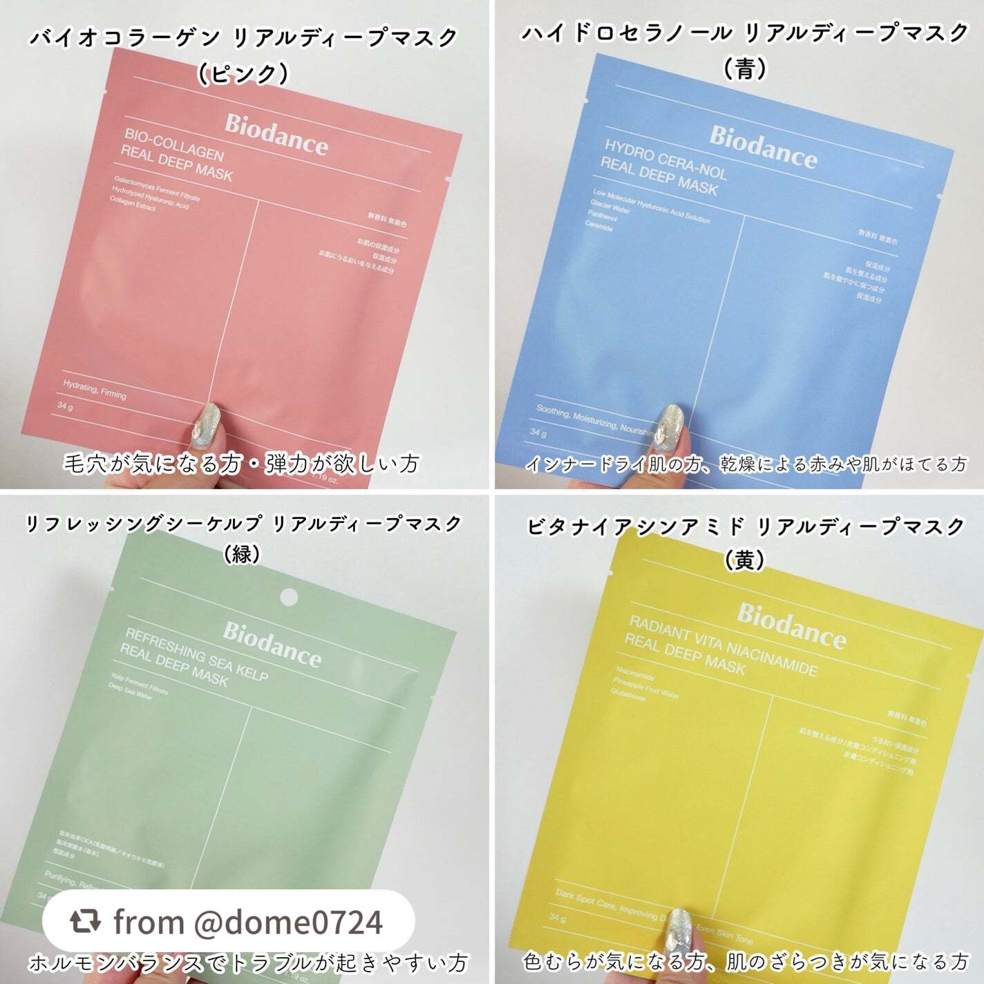 \大人気🌟リアルディープマスクを全4種徹底比較/Biodanceといえばこれ!リアルディープマスクですよね(°´˘`°)オンラインだけでなくオフラインでも手軽に買えるようになってより人気になった気がする𖦊ັピンクが人気かなと思いますが、全部で...