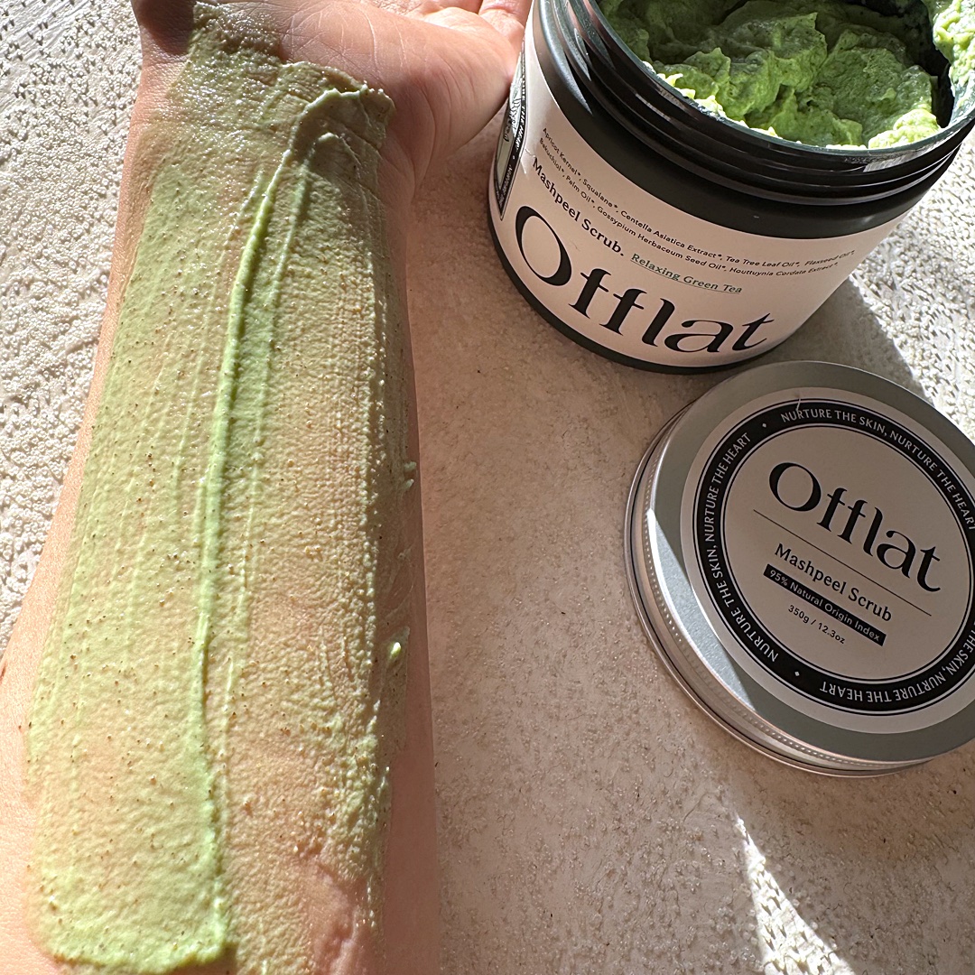- 1.独自の3WAY処方 「オフラットマシュピールスクラブ」は、従来の単一機能商品とは一線を画す3WAY処方を採用しています。ボディスクラブとして球体アンズ種で優しく角質ケアを行い、泡立てネットを使用することで、マイルドなボディソープとして全身洗浄が可能。 さらに、そのまま湯船に入れることで入浴剤としてもお使いいただけ、忙しい現代女性のバスタイムを効率化しながら、質の高いケアを実現します。 2.韓国で人気のハーブピーリングを自宅で 韓方植物を含む24種の美容成分を配合。CICA、ドクダミエキス、ヨモギエキスなど、古来より肌を整えるために用いられてきた韓方成分で、おうちで本格ハーブピーリングを体験できます。 3.日本初*のレチノール配合ボディスクラブ 厳選した3種のレチノール(レチノール・バイオレチノール・バクチオール)を独自配合。レチノール初心者でも毎日使えるボディスクラブとして、刺激を軽減した処方を実現しました。 4.ふわふわマシュマロテクスチャー 独自の「テクスチャリング処方」により、スクラブなのに痛みを感じない、まるでマシュマロのような至福の感触を実現。デリケートゾーンにも使用可能な優しさで、毎日使えるボディスクラブとしておすすめです。 5.癒される森林浴のような深く落ち着く香り 深く穏やかな抹茶の香りを基調とした「リラックスグリーンティー」で、バスタイムを特別なひとときに変えます。 *アンズ種子・レチノールを配合した日本初のボディスクラブ(自社調べ) 2025年9月4日(木)より楽天市場にて先行発売を開始。また2025年9月15日(月)以降より各種ECサイトおよび公式オンラインストアにて順次発売