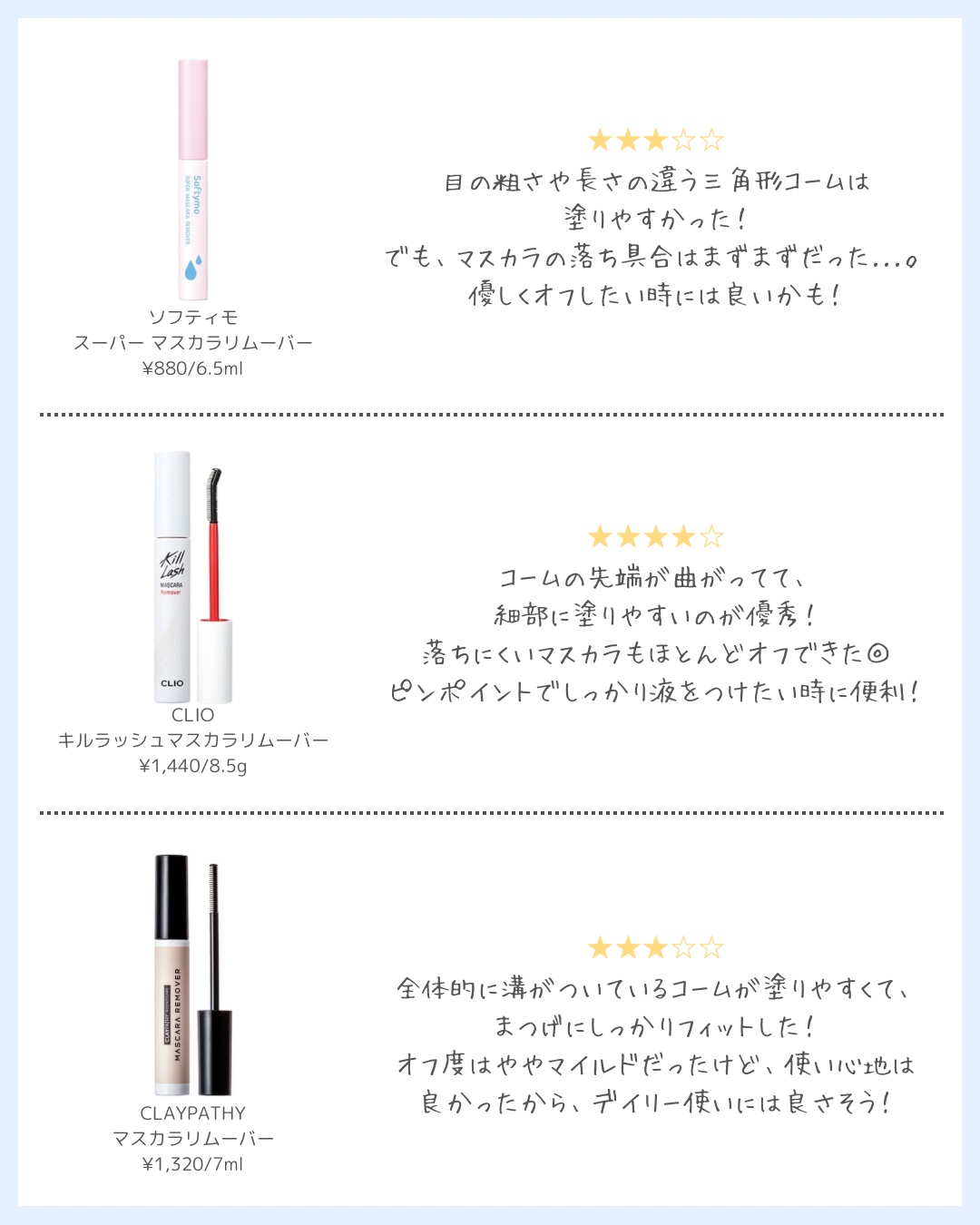 | クレンジングランキング第111位 | 3Dコームでマスカラを塗ったまつげにしっかり液がつき落としやすい気がします! | 詳細を見る | |