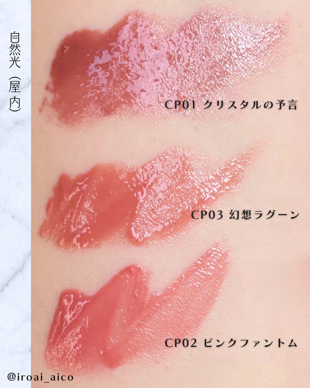- <CP01 クリスタルの予言> テトライソステアリン酸ジペンタエリスリチル、デカイソステアリン酸ポリグリセリル-10、オクチルドデカノール、リンゴ酸ジイソステアリル、ラウロイルグルタミン酸ジ(フィトステリル/オクチルドデシル)、ビスアルキル(C16-18)グリセリルウンデシルジメチコン、トリ(カプリル酸/カプリン酸)グリセリル、水添ポリイソブテン、ラウロイルグルタミン酸ジ(オクチルドデシル/フィトステリル/ベヘニル)、パラフィン、ダイマージリノール酸(フィトステリル/イソステアリル/セチル/ステアリル/ベヘニル)、合成ワックス、ホホバ種子油、マイクロクリスタリンワックス、ジステアルジモニウムヘクトライト、水添マイクロクリスタリンワックス、炭酸プロピレン、トコフェロール、パルミチン酸デキストリン、オリーブ果実油、アーモンド油、(エチレン/プロピレン)コポリマー、ポリエチレン、ヒドロキシステアリン酸エチルヘキシル、ヒアルロン酸Na、フェノキシエタノール、(+/-)セルロース、マイカ、ラウロイルアスパラギン酸Na、ラウロイルリシン、塩化亜鉛、酸化チタン、酸化鉄、水酸化Al、硫酸Ba、トリイソステアリン酸イソプロピルチタン、トリエトキシカプリリルシラン、黄4、黄5、青1、赤201、赤202 <CP02 ピンクファントム> テトライソステアリン酸ジペンタエリスリチル、デカイソステアリン酸ポリグリセリル-10、オクチルドデカノール、リンゴ酸ジイソステアリル、ラウロイルグルタミン酸ジ(フィトステリル/オクチルドデシル)、ビスアルキル(C16-18)グリセリルウンデシルジメチコン、トリ(カプリル酸/カプリン酸)グリセリル、水添ポリイソブテン、ラウロイルグルタミン酸ジ(オクチルドデシル/フィトステリル/ベヘニル)、パラフィン、ダイマージリノール酸(フィトステリル/イソステアリル/セチル/ステアリル/ベヘニル)、合成ワックス、ホホバ種子油、マイクロクリスタリンワックス、ジステアルジモニウムヘクトライト、水添マイクロクリスタリンワックス、炭酸プロピレン、トコフェロール、パルミチン酸デキストリン、オリーブ果実油、アーモンド油、(エチレン/プロピレン)コポリマー、ポリエチレン、ヒドロキシステアリン酸エチルヘキシル、ヒアルロン酸Na、フェノキシエタノール、(+/-)セルロース、マイカ、ラウロイルアスパラギン酸Na、ラウロイルリシン、塩化亜鉛、酸化チタン、酸化鉄、水酸化Al、硫酸Ba、トリイソステアリン酸イソプロピルチタン、トリエトキシカプリリルシラン、黄4、黄5、青1、赤201、赤202 <CP03 幻想ラグーン> テトライソステアリン酸ジペンタエリスリチル、デカイソステアリン酸ポリグリセリル-10、オクチルドデカノール、リンゴ酸ジイソステアリル、ラウロイルグルタミン酸ジ(フィトステリル/オクチルドデシル)、ビスアルキル(C16-18)グリセリルウンデシルジメチコン、トリ(カプリル酸/カプリン酸)グリセリル、水添ポリイソブテン、ラウロイルグルタミン酸ジ(オクチルドデシル/フィトステリル/ベヘニル)、パラフィン、ダイマージリノール酸(フィトステリル/イソステアリル/セチル/ステアリル/ベヘニル)、合成ワックス、ホホバ種子油、マイクロクリスタリンワックス、ジステアルジモニウムヘクトライト、水添マイクロクリスタリンワックス、炭酸プロピレン、トコフェロール、パルミチン酸デキストリン、オリーブ果実油、アーモンド油、(エチレン/プロピレン)コポリマー、ポリエチレン、ヒドロキシステアリン酸エチルヘキシル、ヒアルロン酸Na、フェノキシエタノール、(+/-)セルロース、マイカ、ラウロイルアスパラギン酸Na、ラウロイルリシン、塩化亜鉛、酸化チタン、酸化鉄、水酸化Al、硫酸Ba、トリイソステアリン酸イソプロピルチタン、トリエトキシカプリリルシラン、黄4、黄5、青1、赤201、赤202