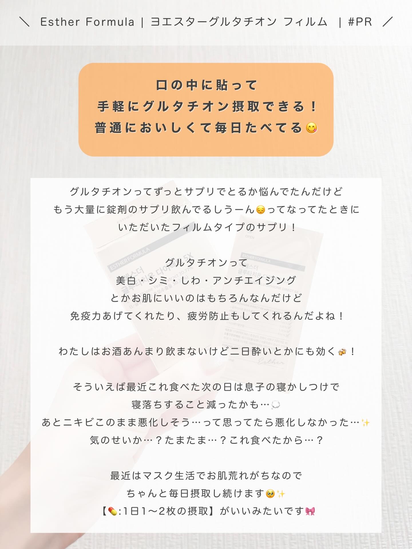 「ESTHERFORMULA」さまから商品提供していただきました♡\\目指せ色白肌❄️//*ESTHERFORMULA*ヨエスターグルタチオンダイレクト5X肌白い韓国オンニから教えてもらった飲むフィルム型サプリフィルム型サプリはエスターフォー...