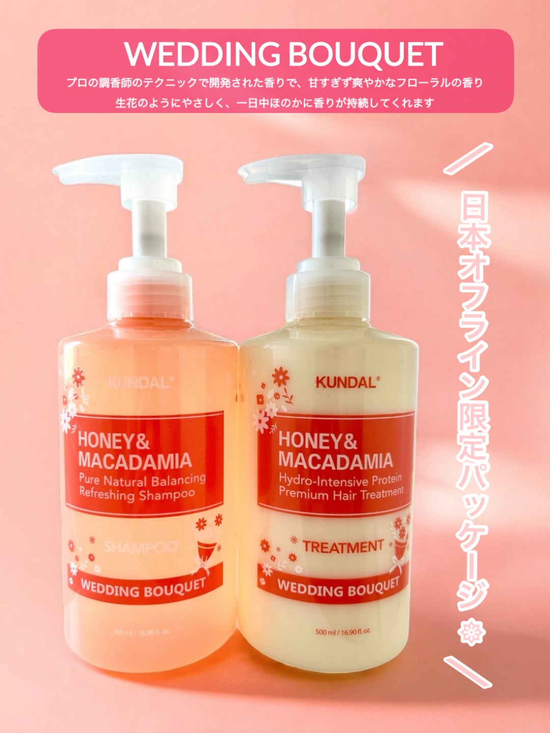 \韓国人気ヘアケア🇰🇷/パーソナルケアブランドKUNDAL(クンダル)KUNDALハニー&マカダミア🍯シャンプー+トリートメント(ウェデイングブーケの香り)💝弱酸性バランスケアでディープクレンジングできる💆LPP低分子タンパク質が入ってて集中...