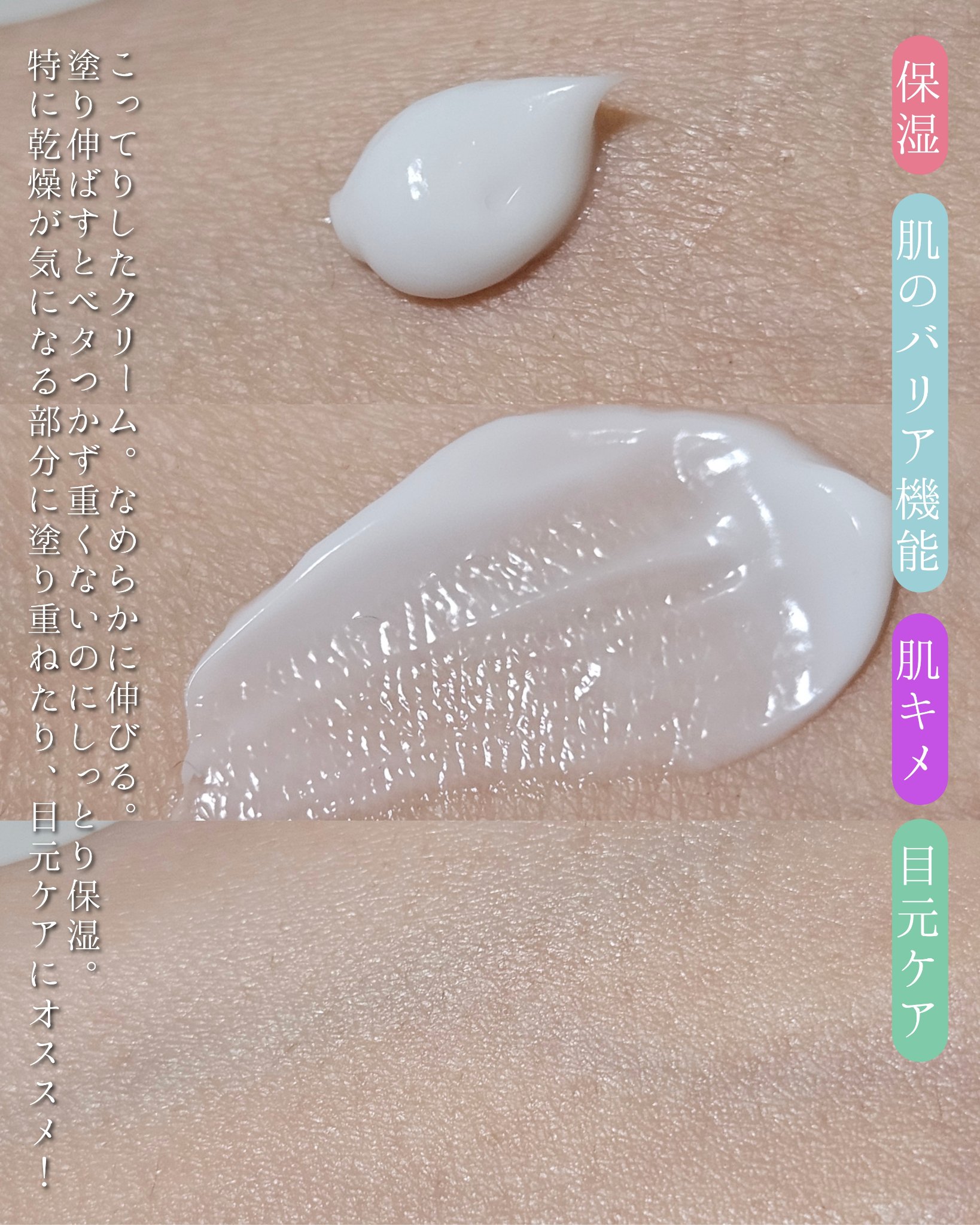 | テクスチャーはふわっとしたクリームで肌に馴染みやすくベタつきはなし 本当に使いやすいクリームです✨ | 詳細を見る | ||
