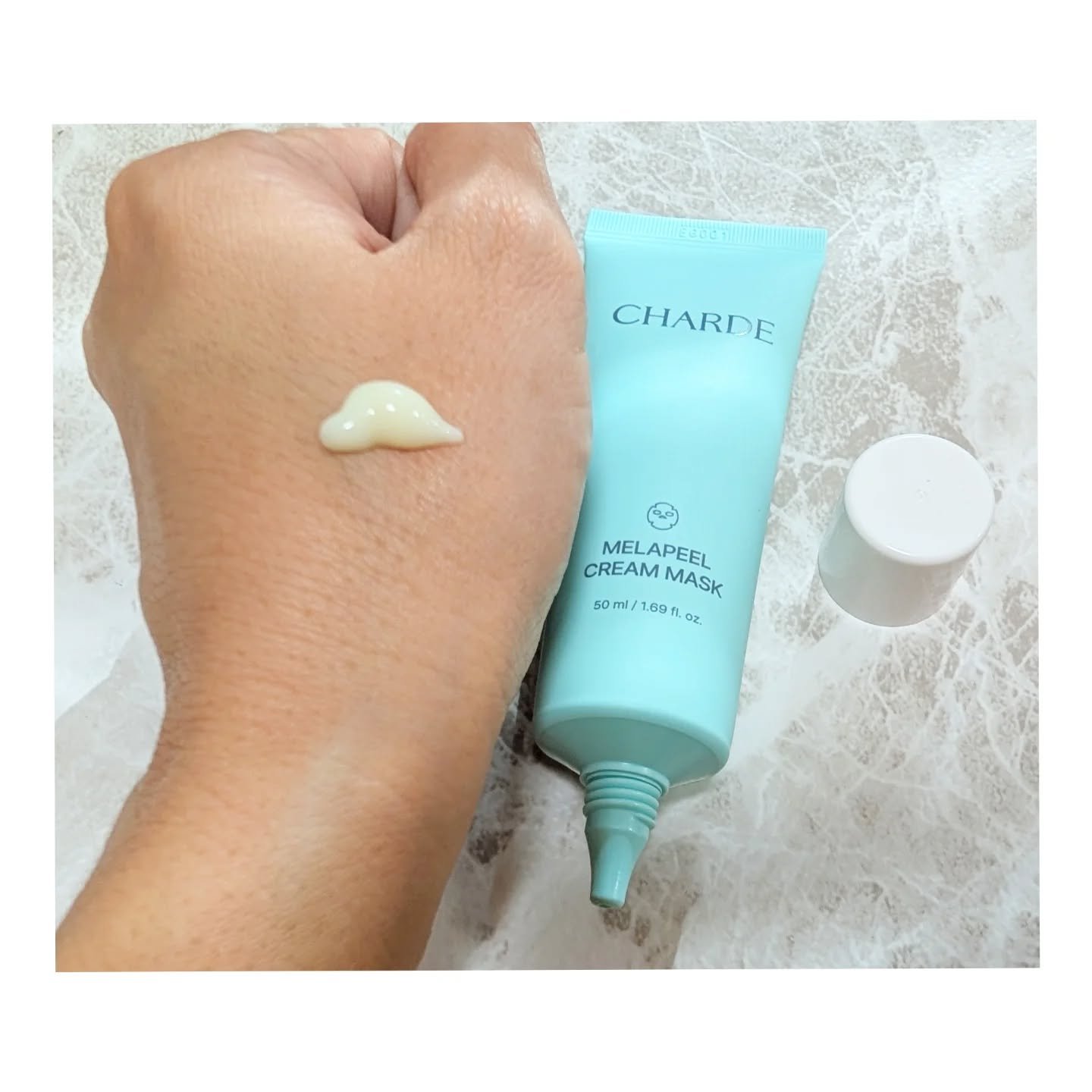 CHARDEメラピールクリームマスク✨塗ってはがすだけでシミのケアが簡単にできる、シャルドの新商品💙シミ、トーンケア、くすみ、角質ケア、ツヤ肌など、幅広い肌悩みにアプローチ🎵ほんのり黄みがかったクリームを気になる部分に塗って、20〜40分程度...