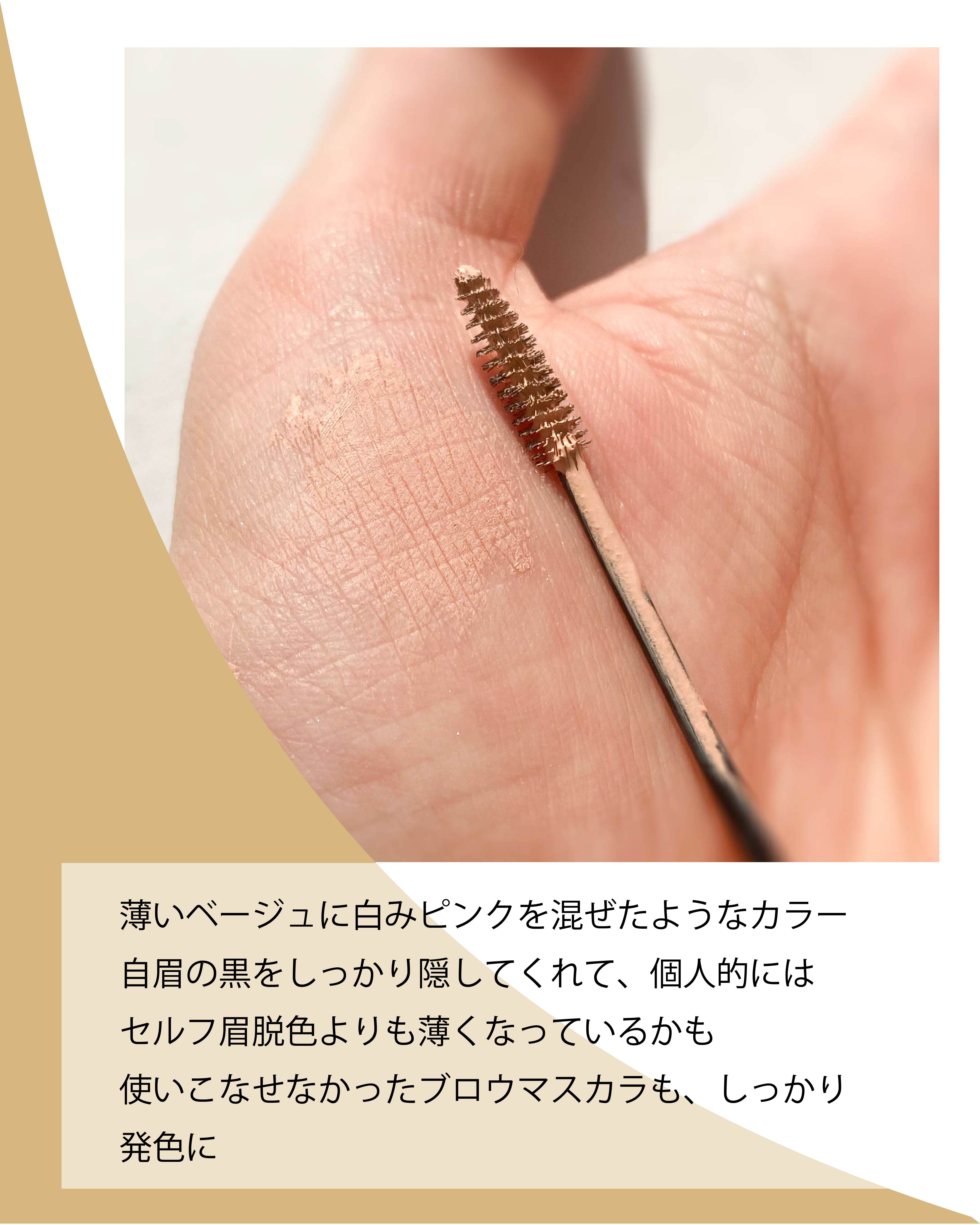 - 2024年4月以降順次定番化! まるでブリーチしたような薄眉に✨ 濃い⿊眉を隠すアイブロウコンシーラー♪ 新提案!これ⼀本で脱⾊⾵の眉になれる、眉⽤コンシーラーです。 本品で⾃眉の⾊を消すことで、上に乗せるアイブロウアイテムの⾊味が キレイに発⾊します✨ 「濃い⿊眉のせいでイマイチ垢抜けない」 「眉の存在感を抑えたいけど眉ブリーチはしたくない」 そんな⽅にオススメ! ⼩回りの利くミニブラシがとっても塗りやすく、 ペタつかないふんわり仕上がり♪♪ 肌から浮かない絶妙なベージュカラーです! 《コンシーラーブロウマスカラの使い方》 ①眉尻から眉頭に向かって毛を逆立てるように塗布する ②眉頭から眉尻に向かって毛流れを整えるように塗布する 《一緒に使うアイブロウアイテムはお好みで!》 ペンシル・リキッド→コンシーラーブロウマスカラ→(乾いたら)パウダー→眉マスカラ ★眉マスカラを塗る場合は毛を逆立てずに塗るのがポイント ※コンシーラーブロウマスカラ塗布後に上から強くメイクすると、はがれる場合がございますので 優しく塗布してください