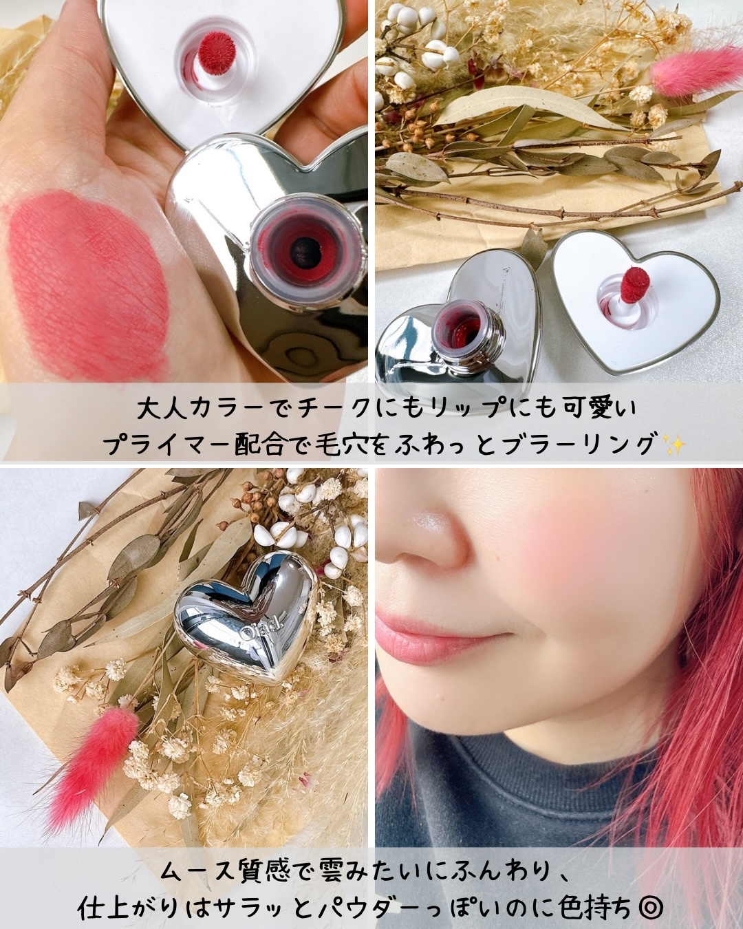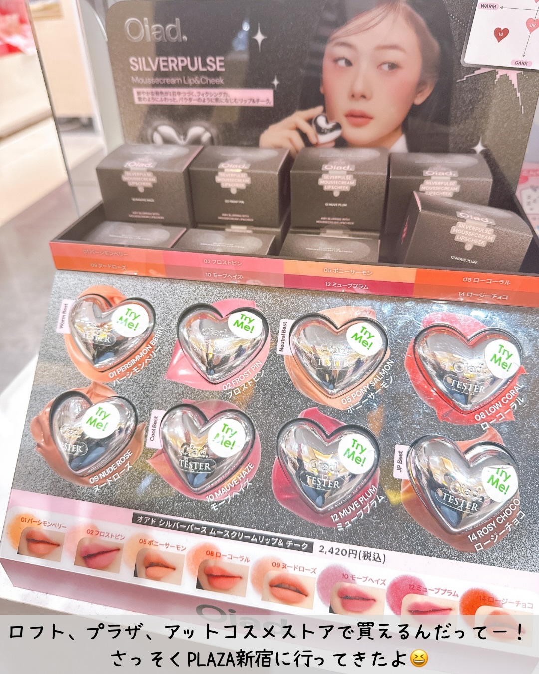 ハートが可愛いと噂のアレ⁉️✦✦oiad.シルバーパースムースクリームリップ&チーク▷12ミューブプラム✦✦ふんわりマットなのに、ムースみたいに軽い使い心地☁️ぽんぽん乗せるだけで自然な血色感が出て、チークにもリップにも使える2WA...