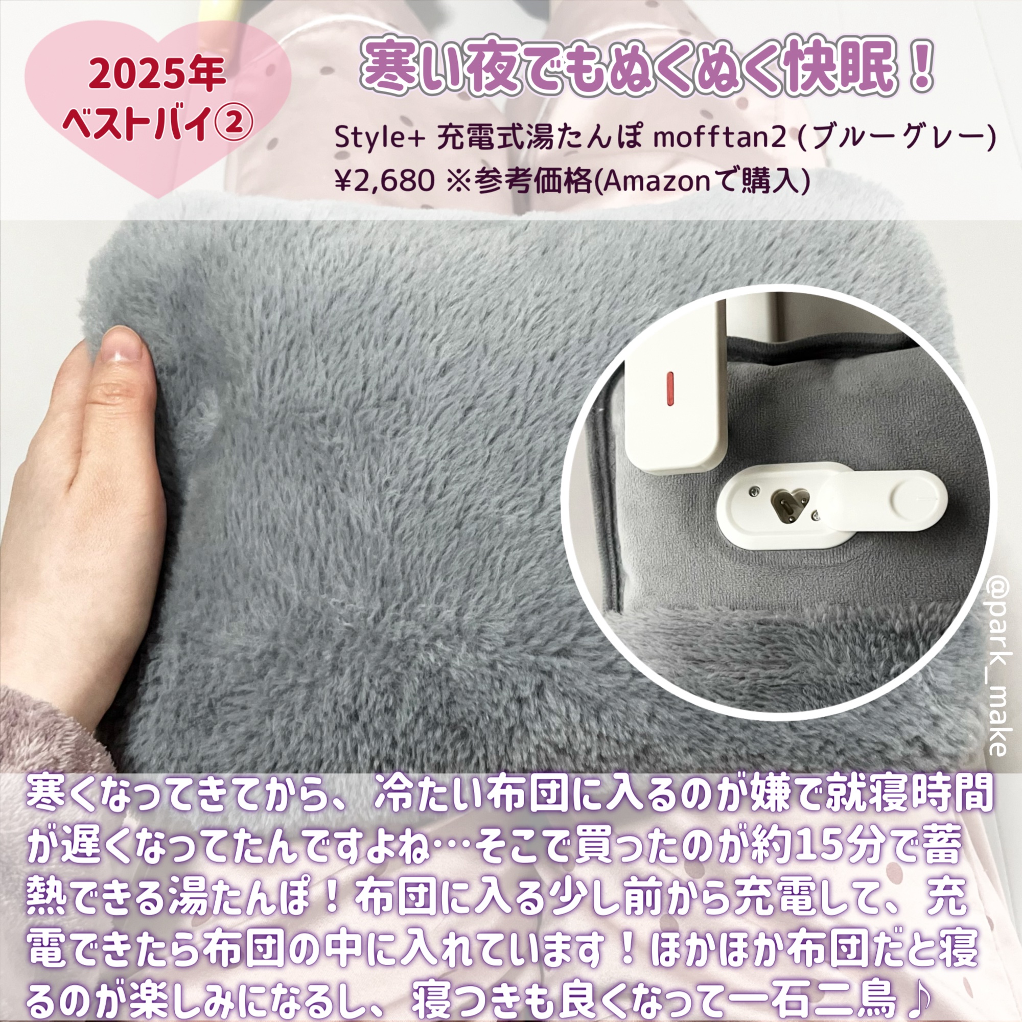 ぱーくちゃん、こんばんは🌙 違うメーカーさんの湯たんぽ使ってるよ😊 充電式で楽だよね! カッターも配達📦️に使ってる👌 枕カバー、洗濯ボール!なるほどだよ😳📝
