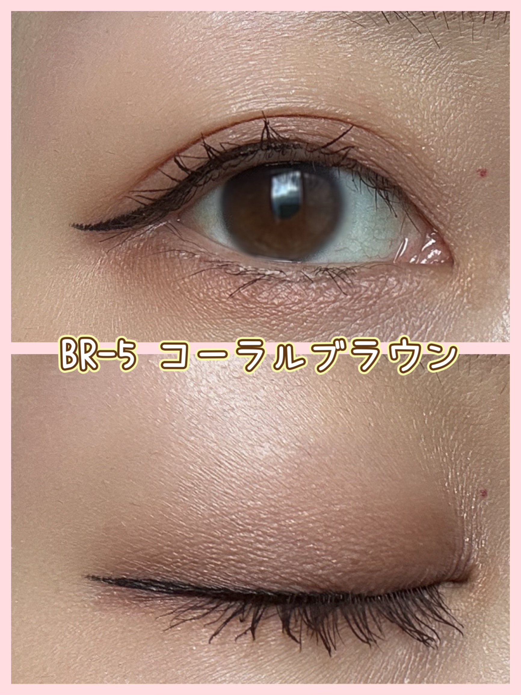 01のマンダリンゴールドはとても抜け感のある淡めの色✨ 私の目には少し物足りなくなっちゃうけど目がはっきりしている方はめちゃめちゃ可愛いと思う!! 03のモカブラウンは手に描いた時におおーーっ!となった絶妙な赤みブラウン。 パールタイプで写真じゃわかりづらいけどツヤっとしてるよ💓 この色が本当に本当に可愛くて🥺✨✨ラインひいて可愛いなぁ…と写真撮ったらマスカラ忘れてた😂 04のオリーブブラウン🫒これはラメタイプ。これは正にオリーブ!って色✨目に描くと深みの中にほんの少し抜け感?が出るようなオシャレ色✨