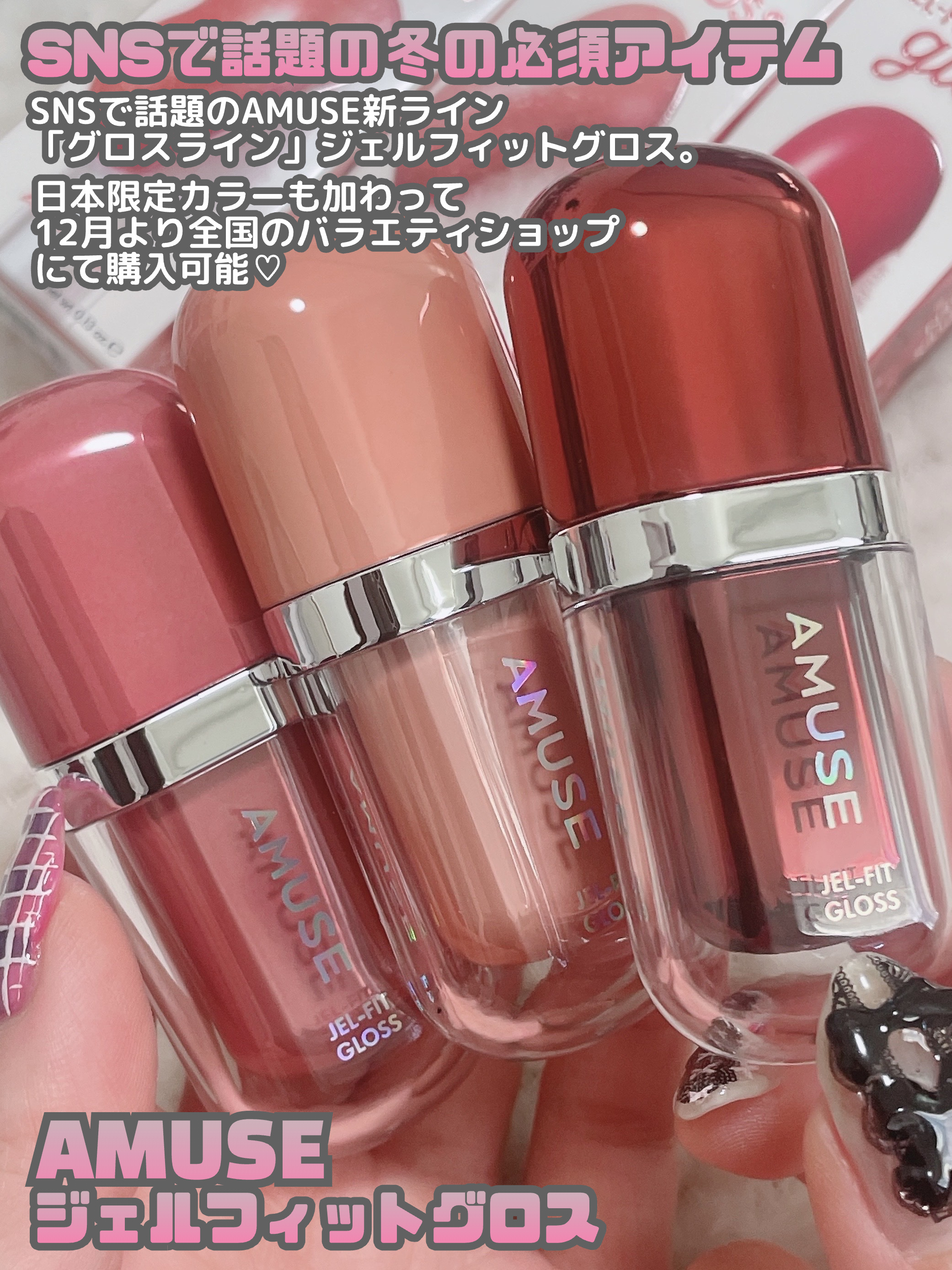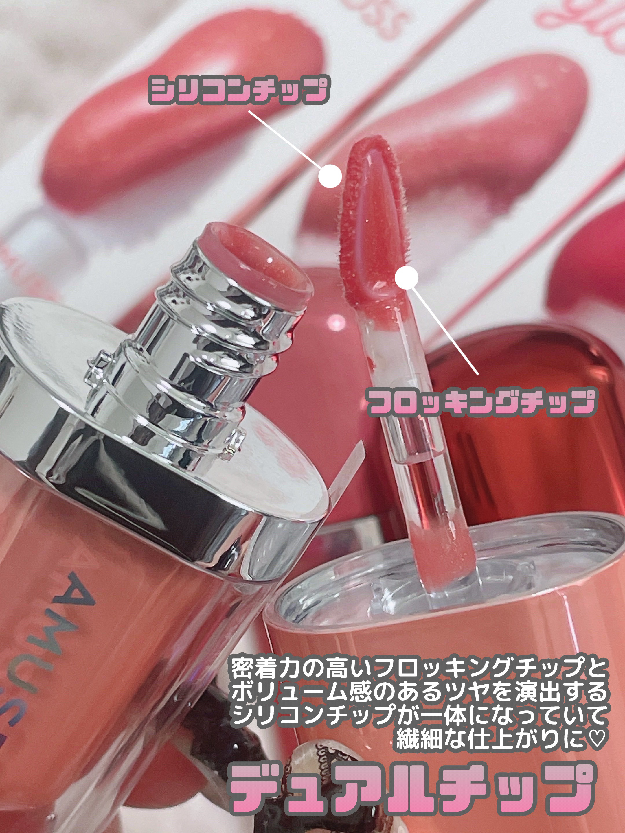 AMUSE新ラインジェルフィットグロス日本限定カラー‼︎パール入りまで‼︎かんわいい˗ˋˏ♡ˎˊ˗AMUSEジェルフィットグロス新概念のジェル硬化テクノロジーで唇にしっかり密着&固定されて長時間持続する新しい次元のグロス/プランピング効果でぷ...