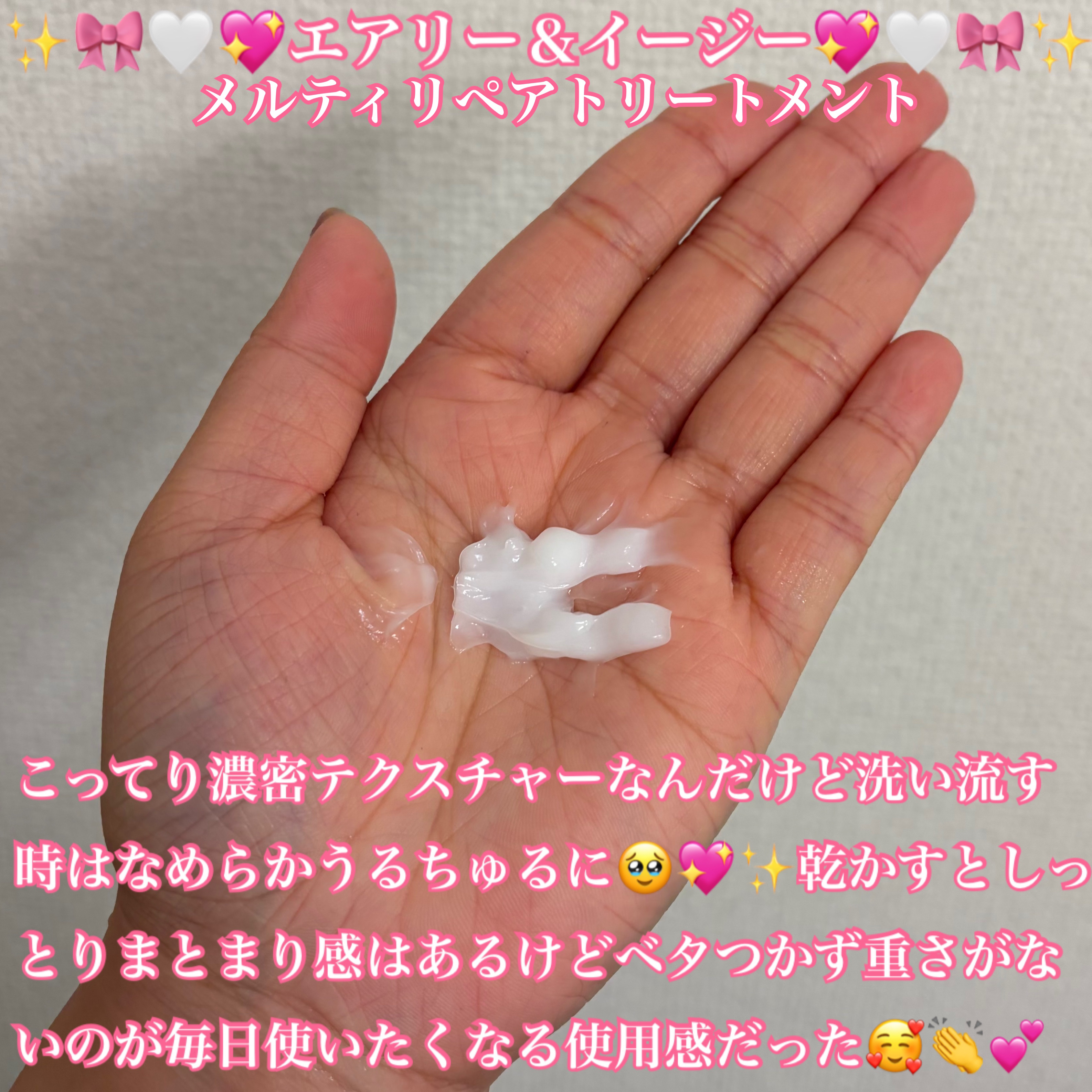 エアリー&イージーメルティリペアシャンプー&トリートメント」をお試ししてみました。泡立ちはやわらかくて、しっかり髪全体を包み込んでくれる感じ。洗い上がりはきしまず、指通りがなめらかでした。トリートメントは重すぎず、ふわっと軽やかな仕上がりに。...
