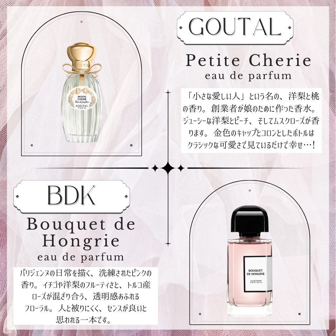 | フローラル系で可愛らしい、かつセクシーというどちらの面も持ち合わせている気がします! | 詳細を見る |