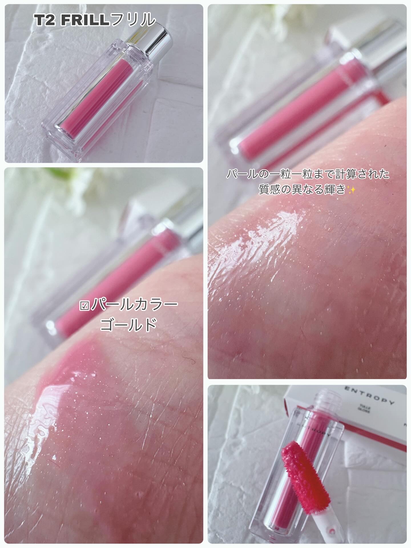 【暗がりで輝く】ENTROPYチュールグロスチュールのような煌めきの透け感のあるグロス🧚♂️SILK(シルク)澄んだ光のヴェールに繊細な輝きを散りばめたピュアグロウチュールグロスFRILL(フリル)血色感をほんのり添えるピーチコーラル🌱◯角...