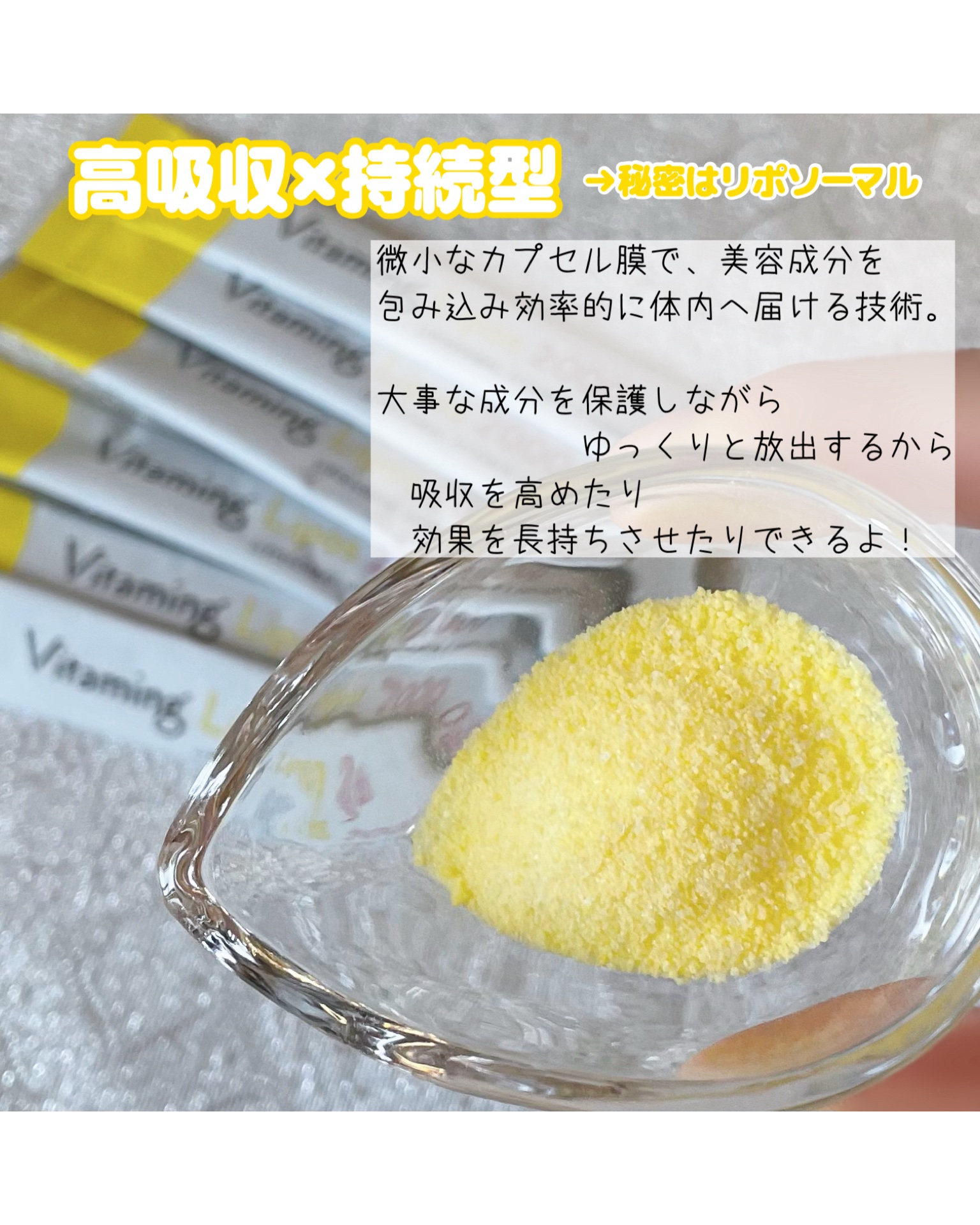 .VitamingVitamingLipos(リポソームビタミンC2000mg).\ビタミンCは「量」より「吸収率」!新しいビタミンC習慣/💊吸収率にこだわった「リポソーム型」を採用!吸収性に優れたリポソーム化に成功!カプセルに閉じ込めること...