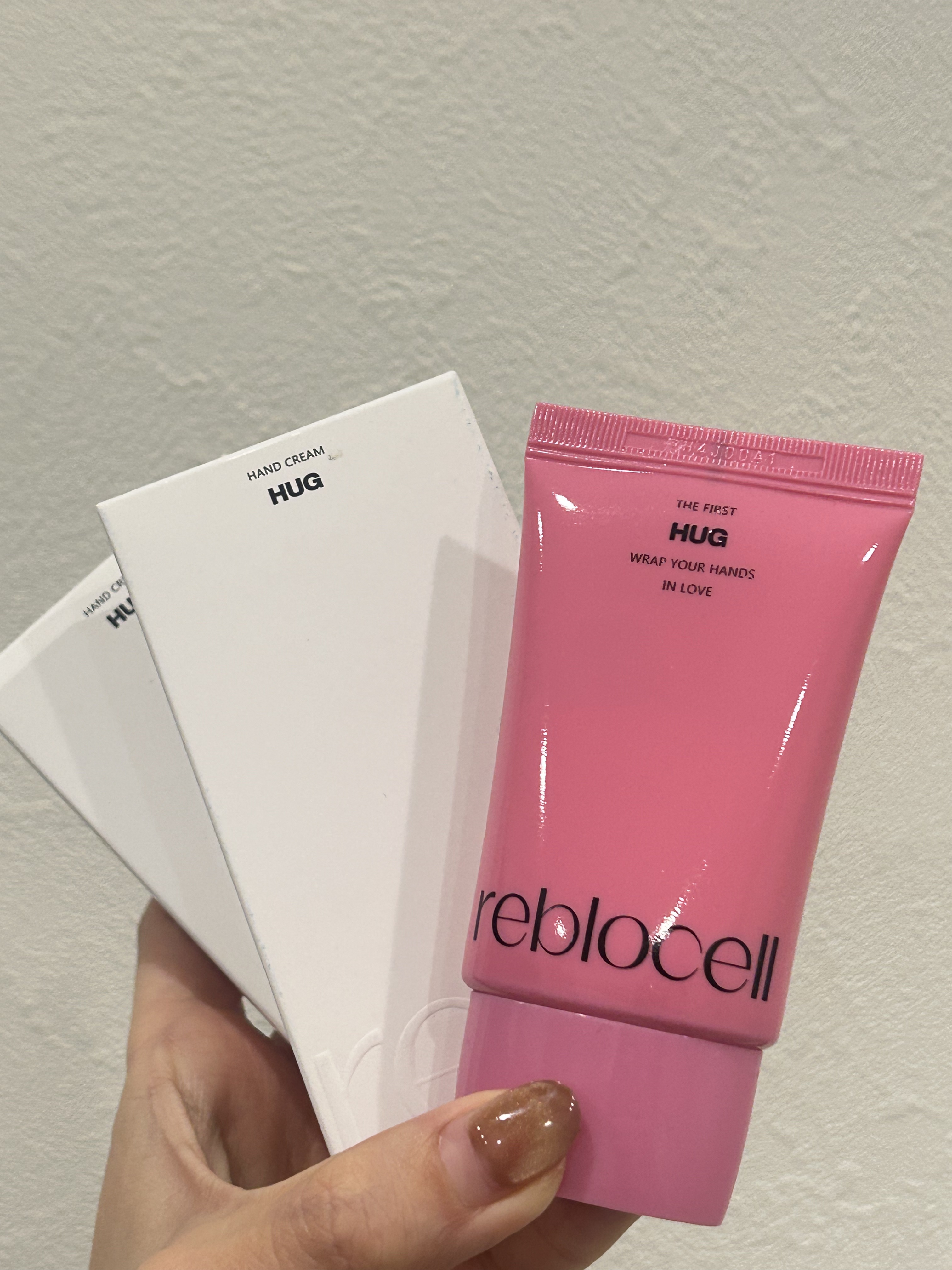 reblocellHUGハンドクリームピンクのパッケージが可愛い🩷ハーブとシトラスの爽やかさとムスクやアンバーの高級感のある香り🌿のびが良くて、なじみがはやい!ベタつかなくて、しっとりとする付け心地💗ベタベタしないので、つけた後にスマホやPC...