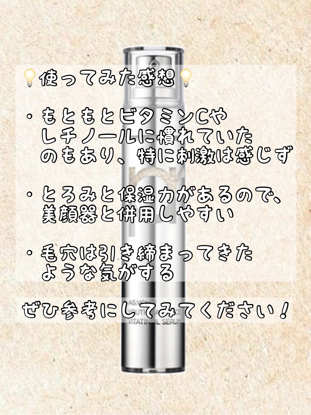 | スキンケアランキング第20位 | クリームよりこってりしてなくて、 どちらかというとすーっと伸びの良い エッセンスのようなテクスチャーでした◎ | 詳細を見る |
