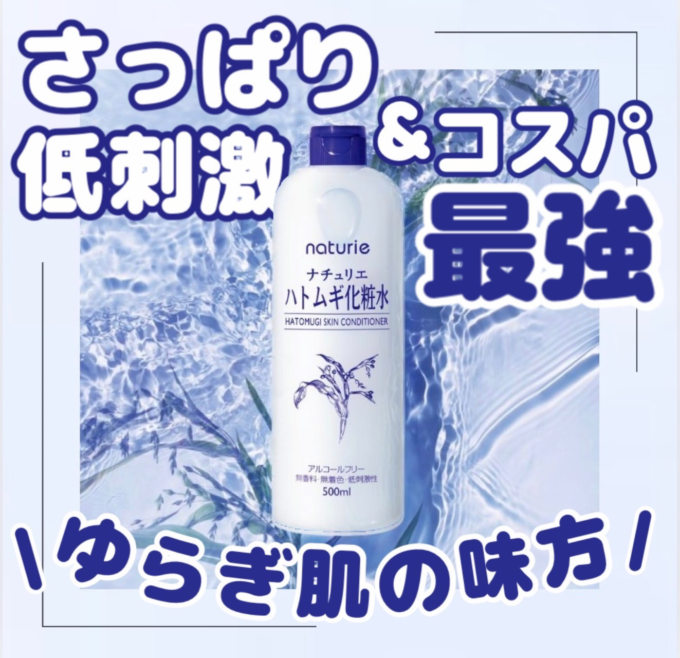 - 肌にうるおいを与えてスキンコンディションを整える、天然保湿成分ハトムギエキス配合の化粧水です。 みずみずしく浸透力に優れた処方なので、重ねるほどぐんぐん肌になじみ、角質層を水分で満たします。 たっぷり肌に重ねづけしてもべたつかないさっぱりした使用感なので、スキンケアのはじめにたっぷり使ってください。 肌がひんやりしてきたら十分に水分がなじんだサインです。 ■基本は化粧水として スキンケアのはじめにたっぷり使ってください。 500円玉大の量を3回重ねづけするのが目安です。 肌がひんやりしてきたら十分に水分がなじんだサインです。 ■ローションパックでさらにうるおい コットンやフェイスマスクにたっぷり含ませて約3分間パックすると、角質水分量がさらに高まります。 ■プレ化粧水として 洗顔後すぐにつけることで、その後につけるスキンケアのなじみをよくします。※角質層まで ■ボディにも べたつかないので、毎日の入浴後や日差しを浴びた後などのボディのスキンケアにもおすすめです。